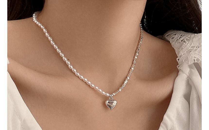 デザイン)ハートフェイクネックレス(各種合金/パール