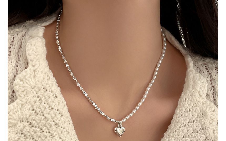 ハート/フェイクパール合金ネックレス(各種デザイン)