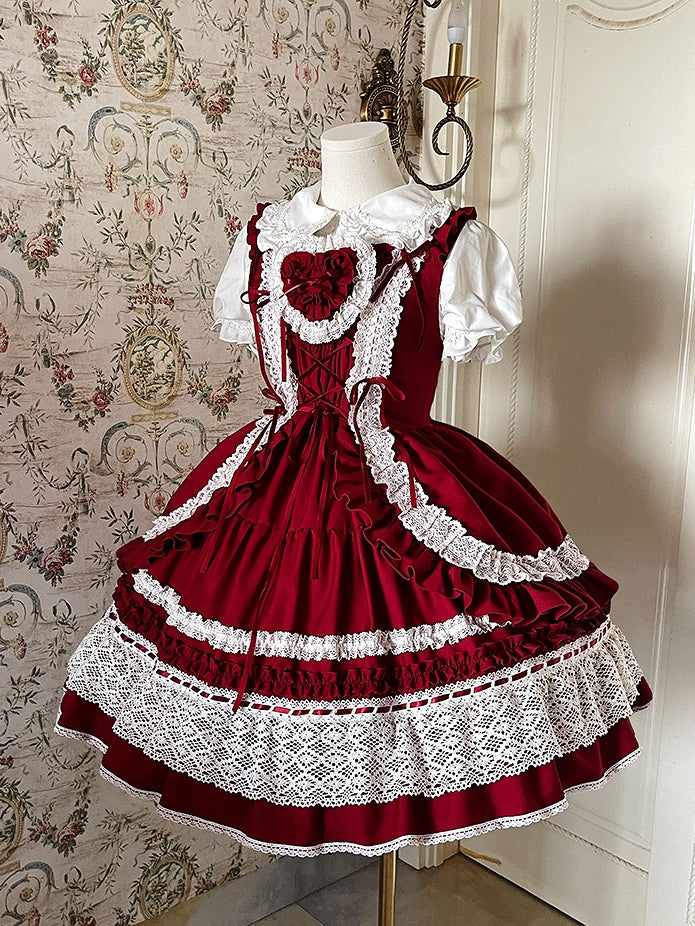 取り外し可能なスクールパッド入りハートジャンパー、古いロリータスカート、赤いドレスボディス