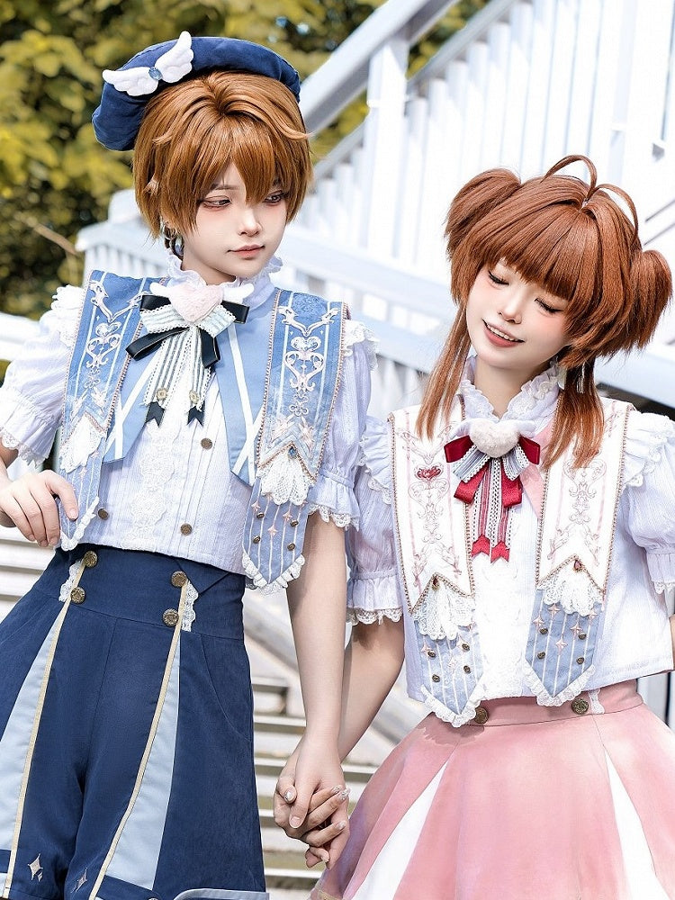 Detachable with Blue/Pink Lolita Collar Print Dark Rhinestone and Accents Lace