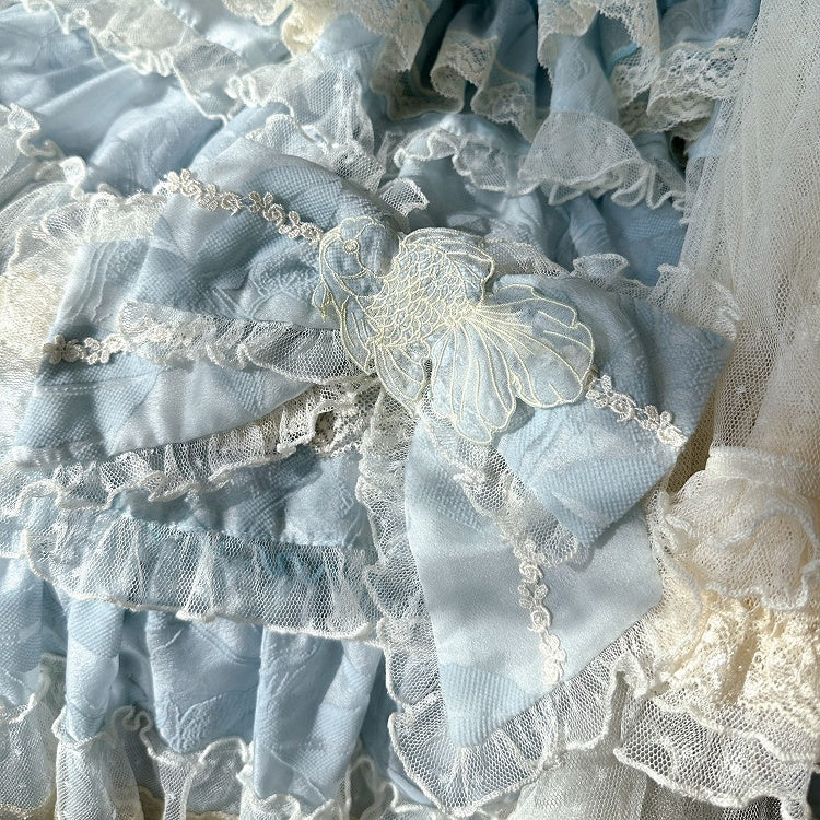 Detail Haircip Goldfish Bow Embroidered Lolita Sweet Pink/Blue/Green with