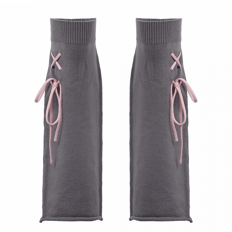 コントラストピンクのレースアップディテールダークグレー46CMレッグウォーマー