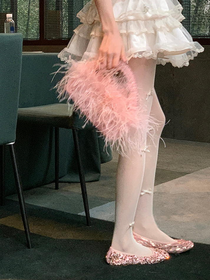 詳細 タイツ 蝶結び ブラック/グレー/ホワイト