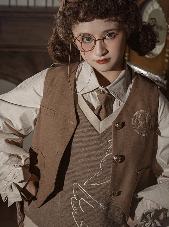 探偵風レトロニットベストで、ワードローブにレトロな魅力をプラス。クラシックなニットデザインにスタイリッシュなひねりを加えたベストです。次の事件解決に向けて、暖かくキュートな着こなしをお楽しみください。
