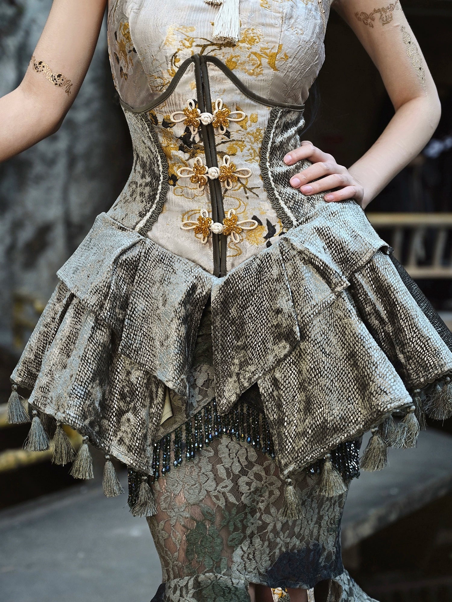 ディスクバックルタッセルフィッシュボーンチャイナウエストバンド