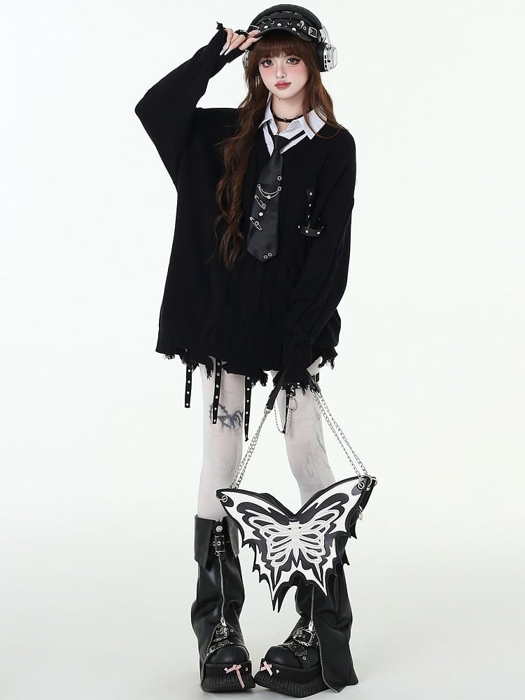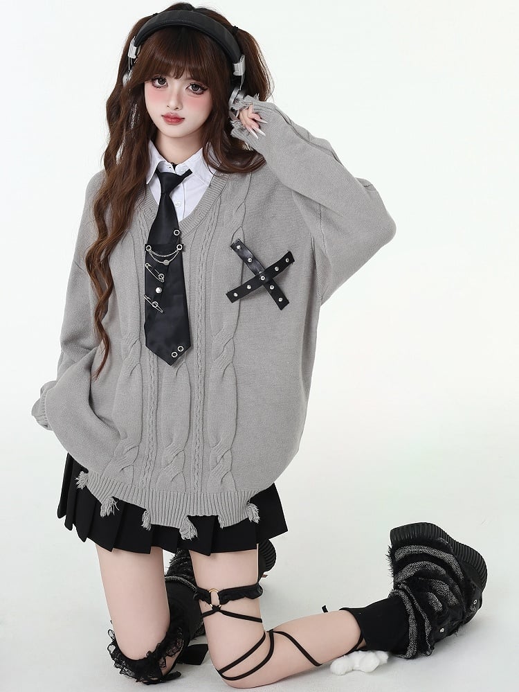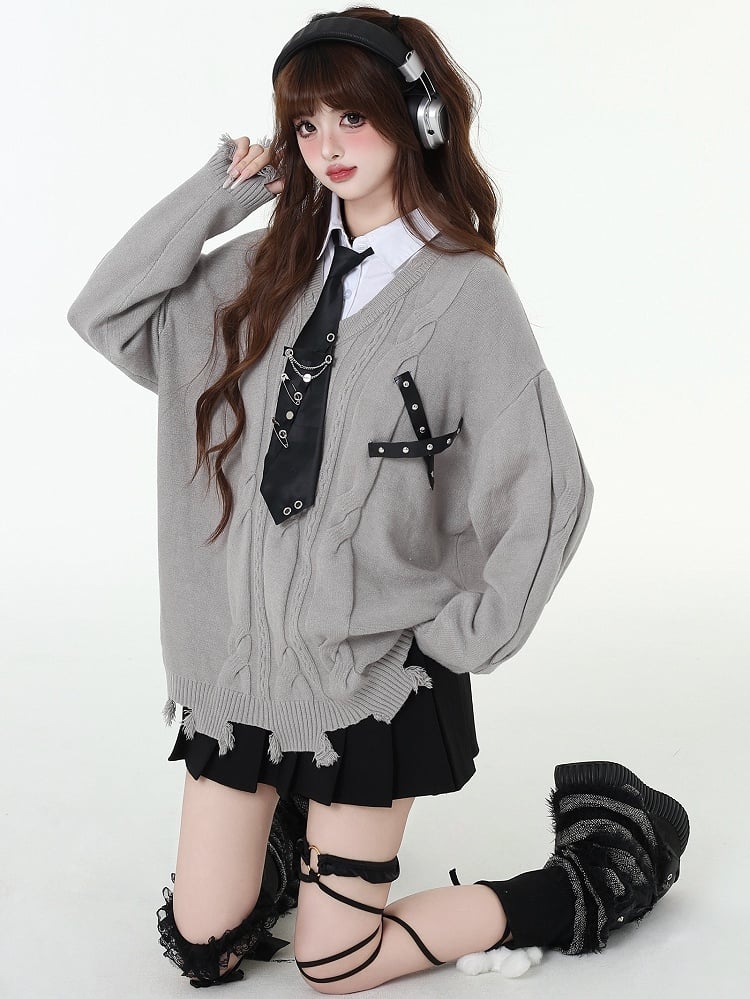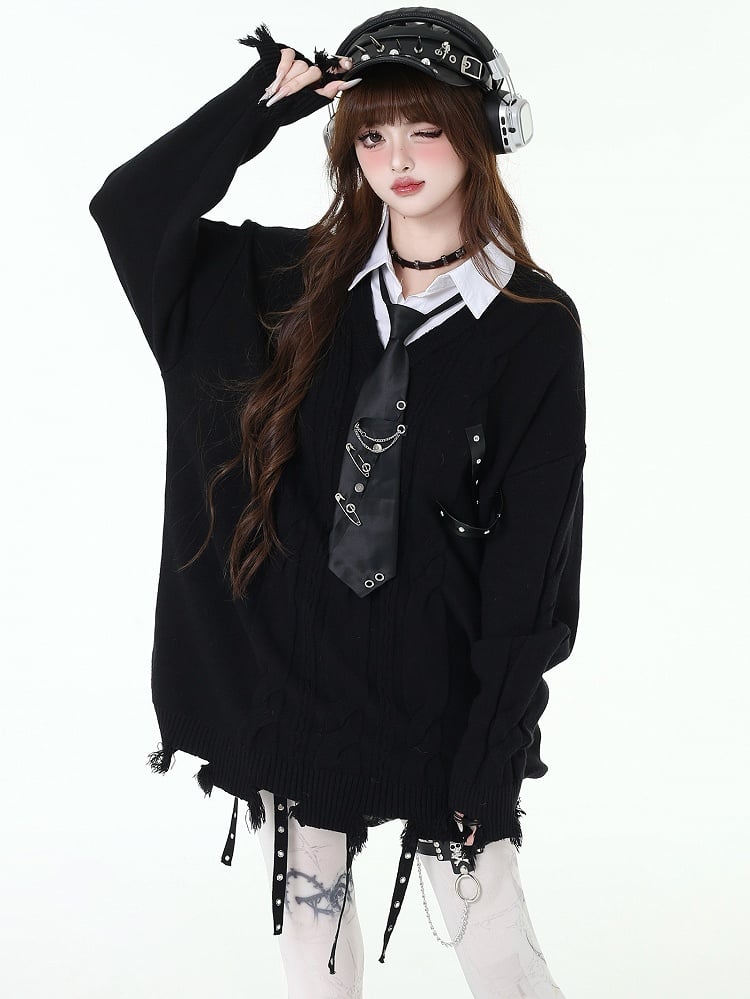 ディストレストリムフェイクツーピースプレッピーセーター(フリータイ付き)