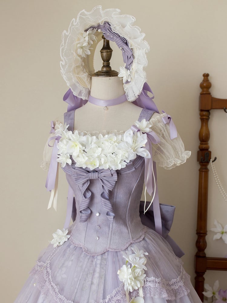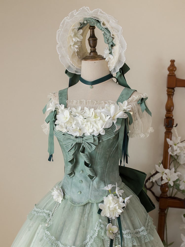 青と白のオールドスクールロリータファッションドレス 蝶結びディテール JSK セット