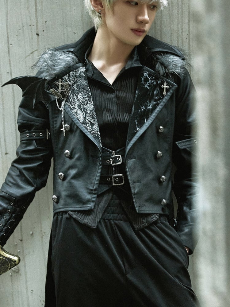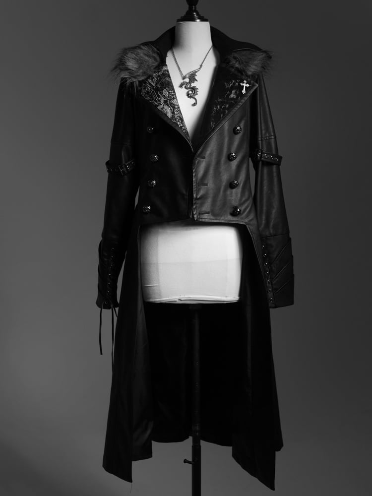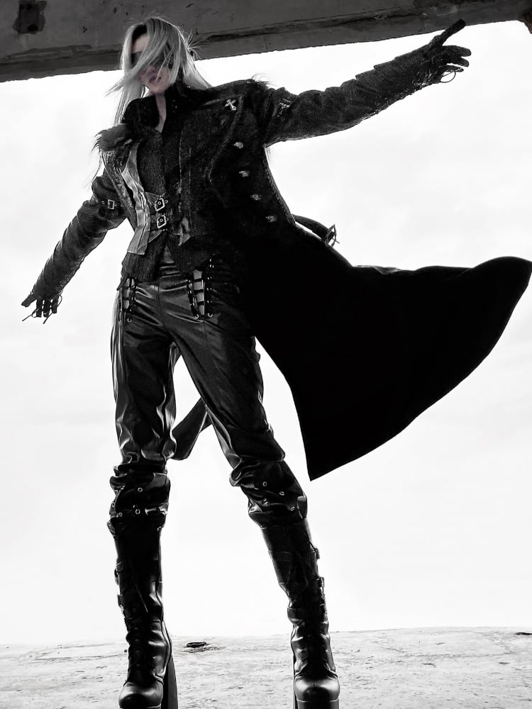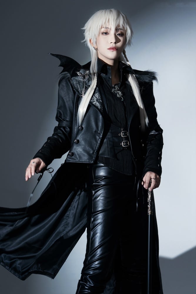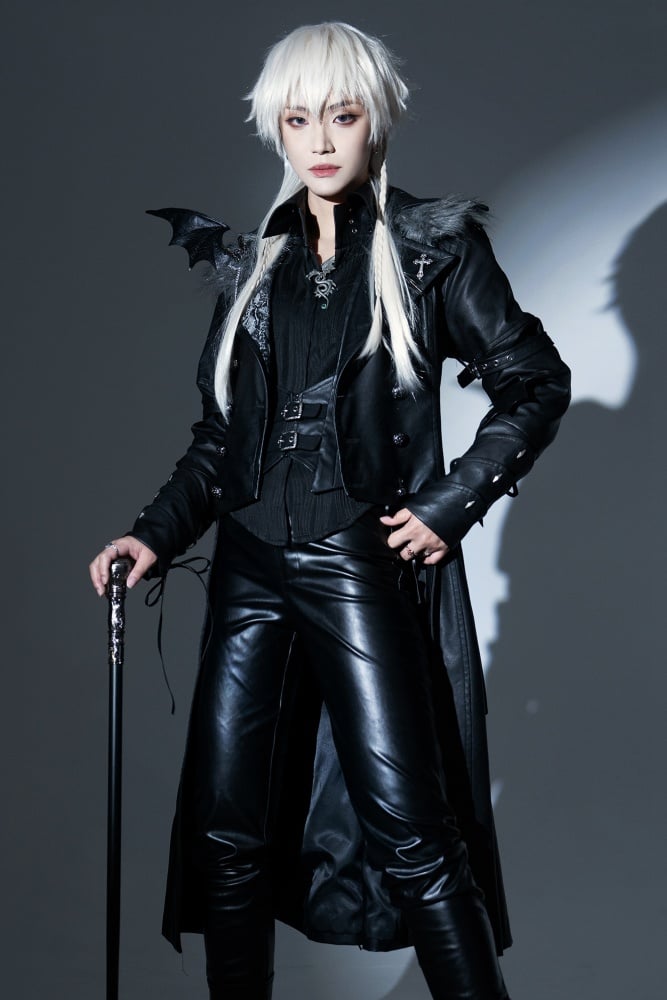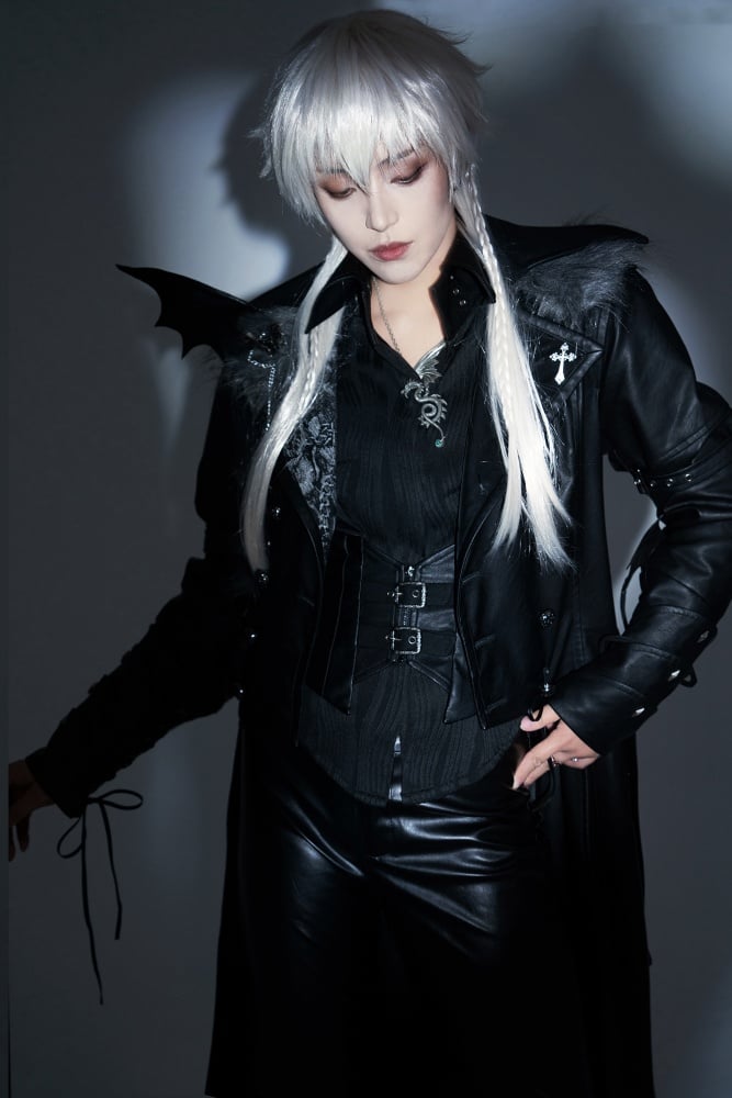 ファイナルファンタジーのセフィロスを彷彿とさせる、クールなPUレザートレンチコート。取り外し可能なロイヤルフェイクファーの襟が付いた、ハイローブレザーカラーのウエストコート。王子ロリータファッションの男性バージョン(XLサイズ)の燕尾服もご用意しています。