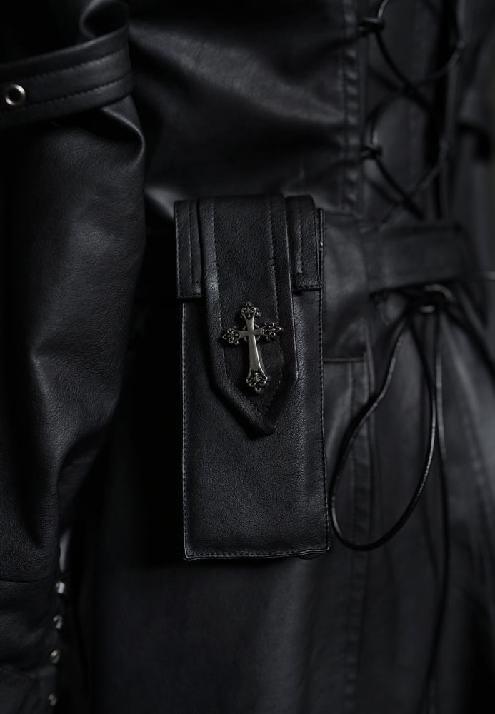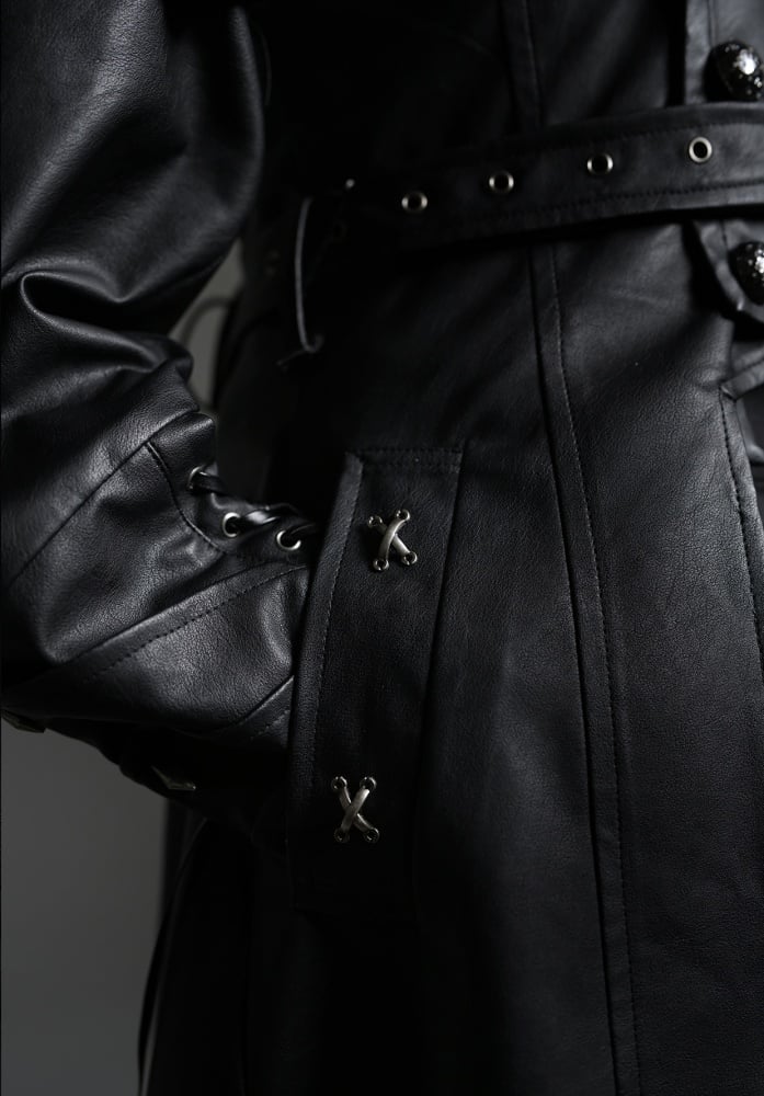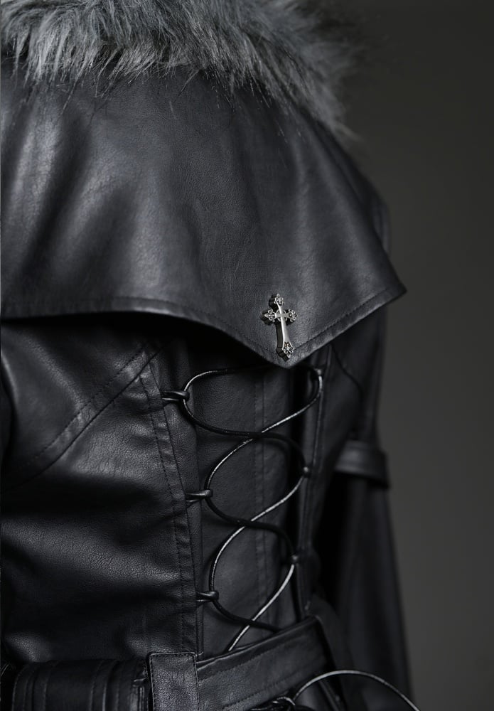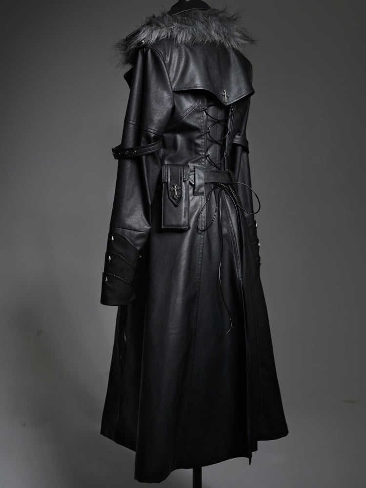ドラゴンズブレス ブラックフェイクファーカラー PUレザートレンチコート