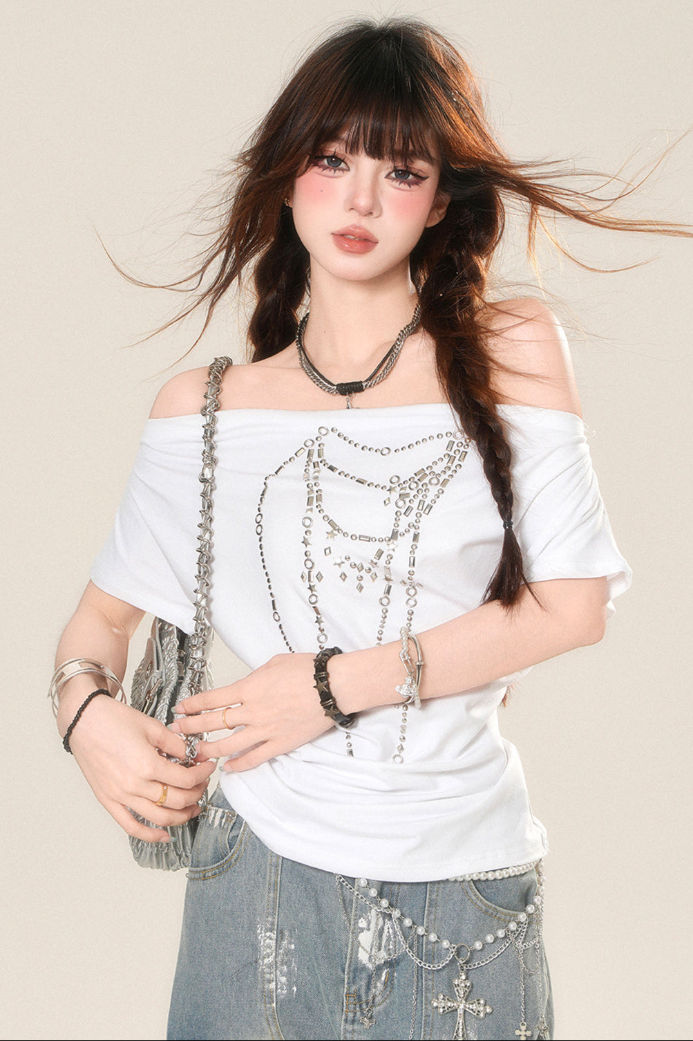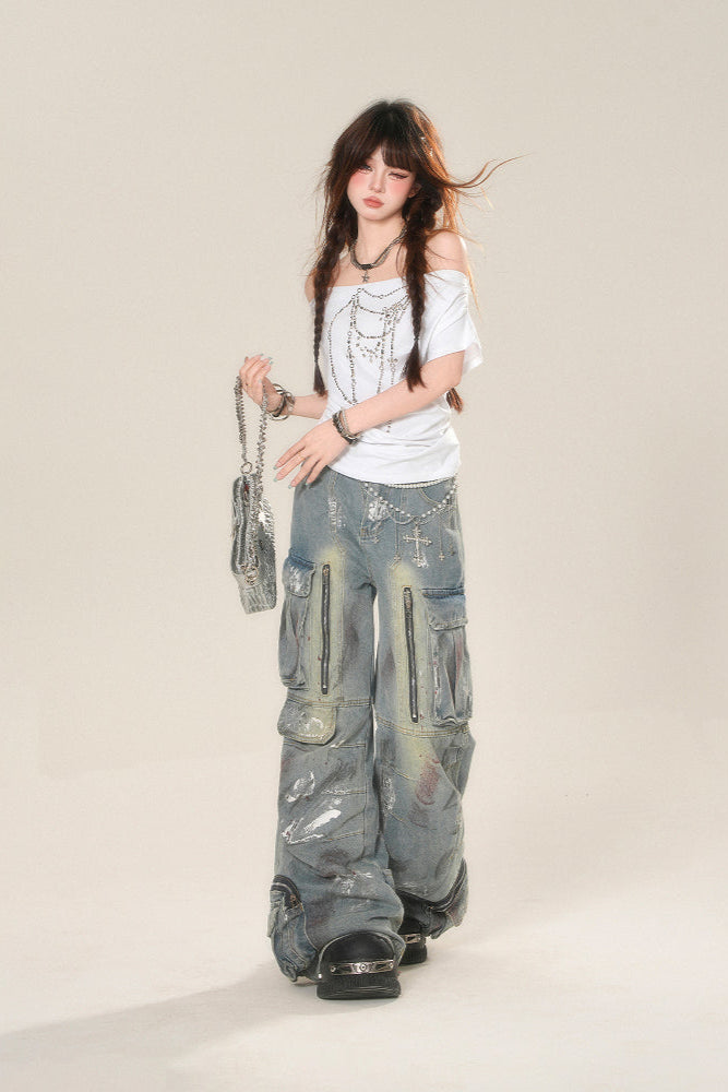ドローストリングワンショルダーTシャツ