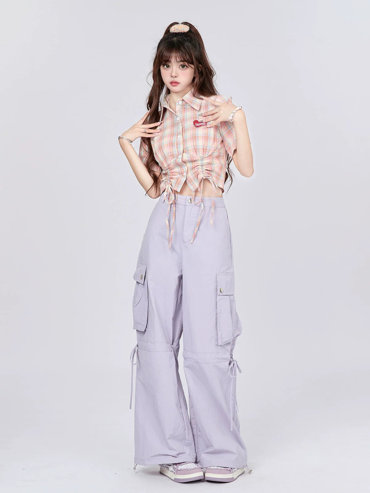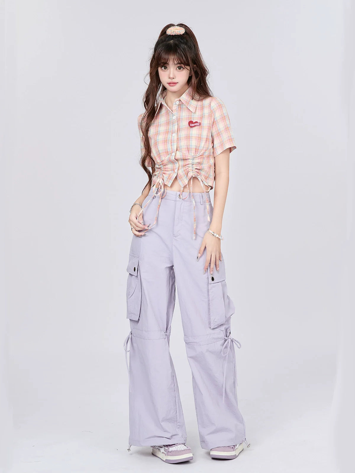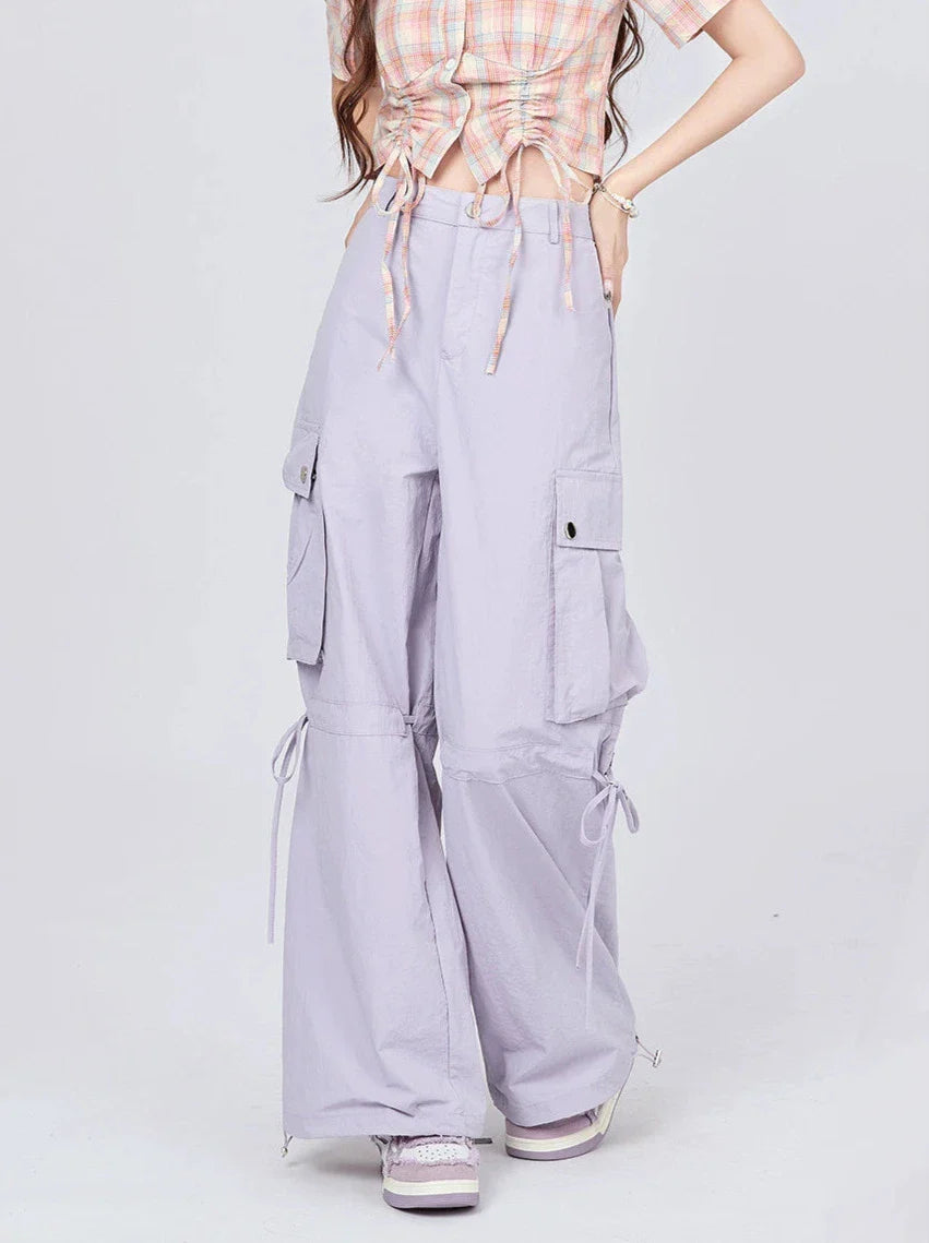 実用性と可愛さを兼ね備えたドローストリングパンツ。ゆったりとしたカーゴスタイルで収納力も抜群。ドローストリングストラップが快適なフィット感を提供します。どんなカジュアルなシーンにもぴったりの、ワードローブに欠かせないアイテムです。