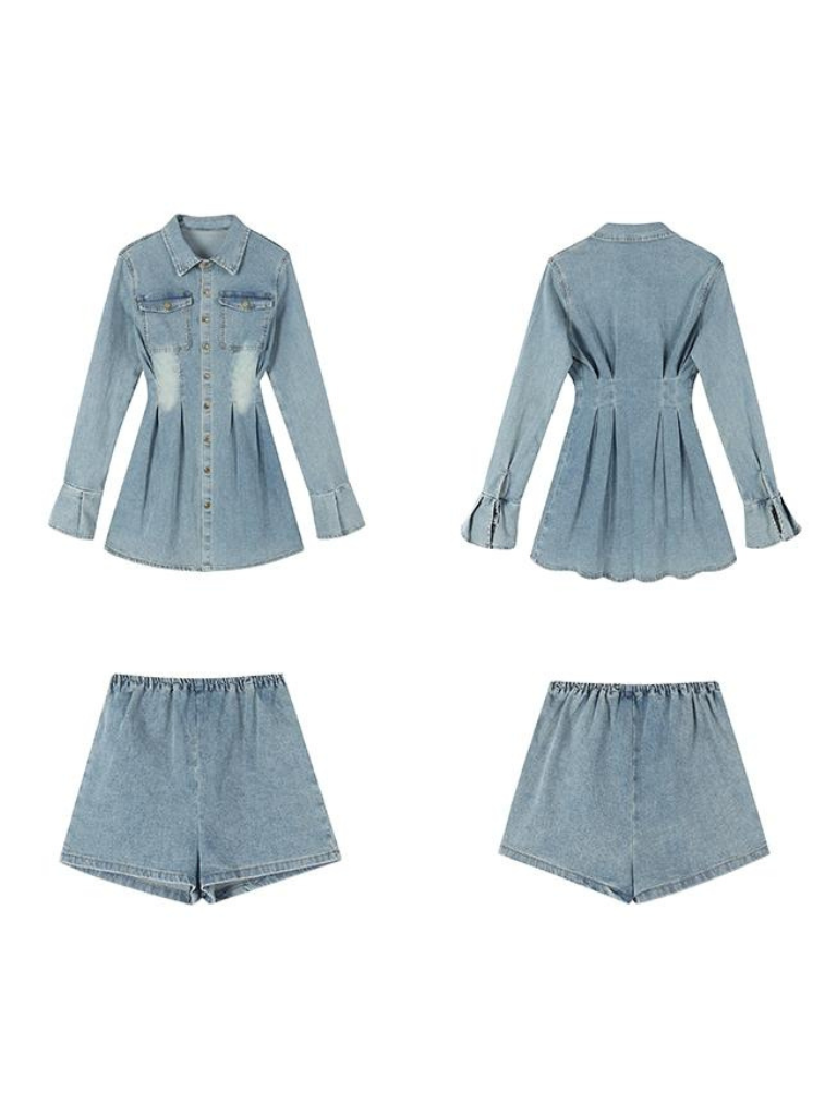 Dress American Retroの可愛らしいデニムスーツで、スタイリッシュに着こなしましょう。キュートなデザインがあなたを引き立て、上質なデニム素材が耐久性も抜群です。どんなシーンにもぴったりのこのスーツは、ワードローブに魅力を添えてくれるでしょう。
