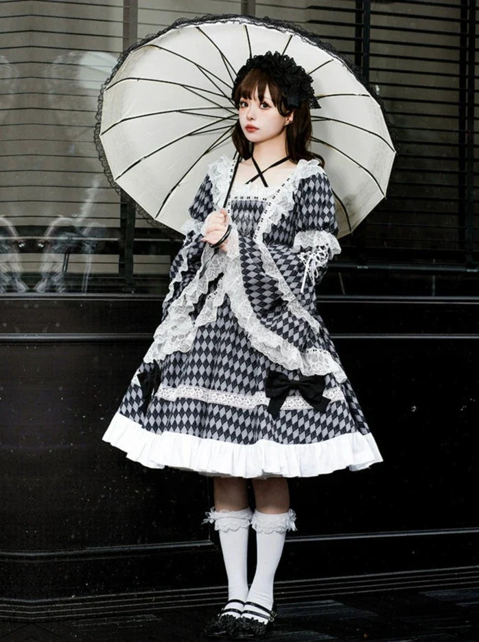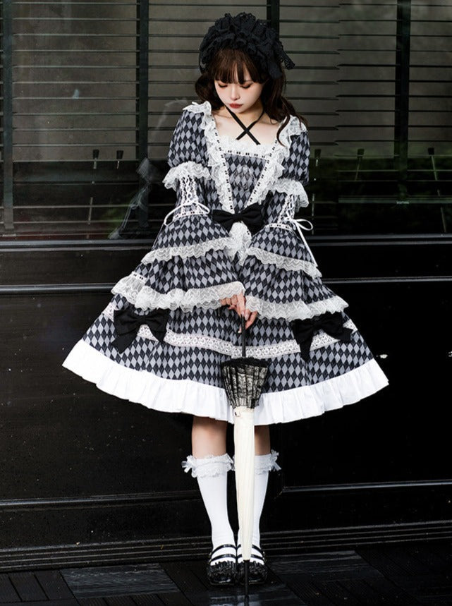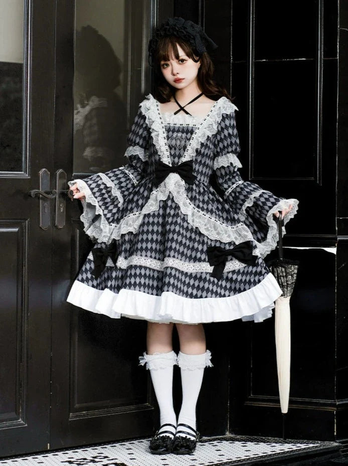 黒と白のオールドスクールロリータファッションドレス蝶結びロリータJSKセット