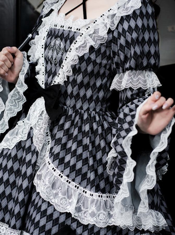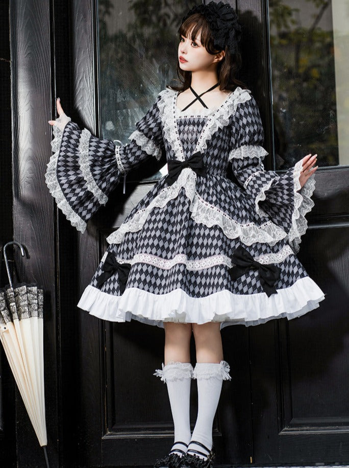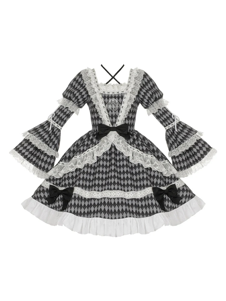 大きなチェックのロリータリボンドレス