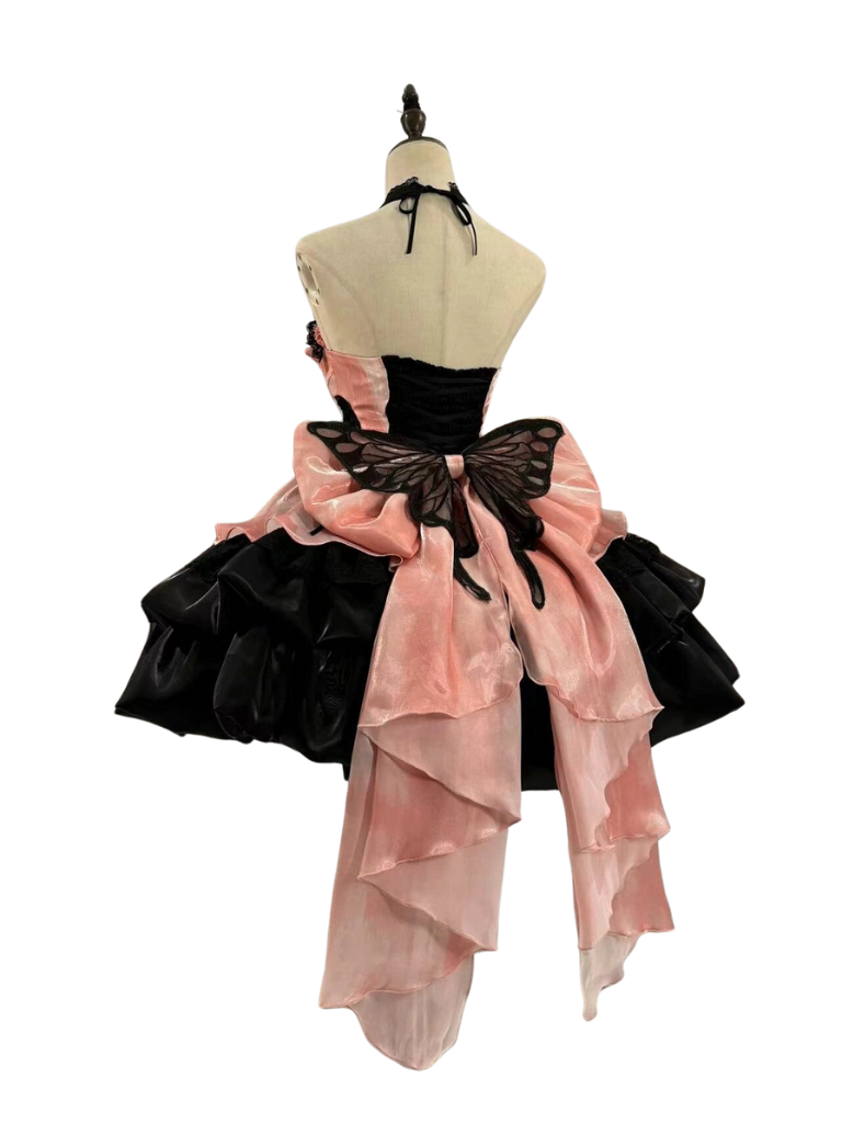 ピュアピンクのプリンセスラインがキュートなブラックサスペンダーホルターネックドレス。ワードローブに可愛らしさをプラス。ロリータネックの可愛らしいデザインは、チャーミングで愛らしいルックにぴったり。このドレスで個性をアピールし、個性的なスタイルを披露しましょう。
