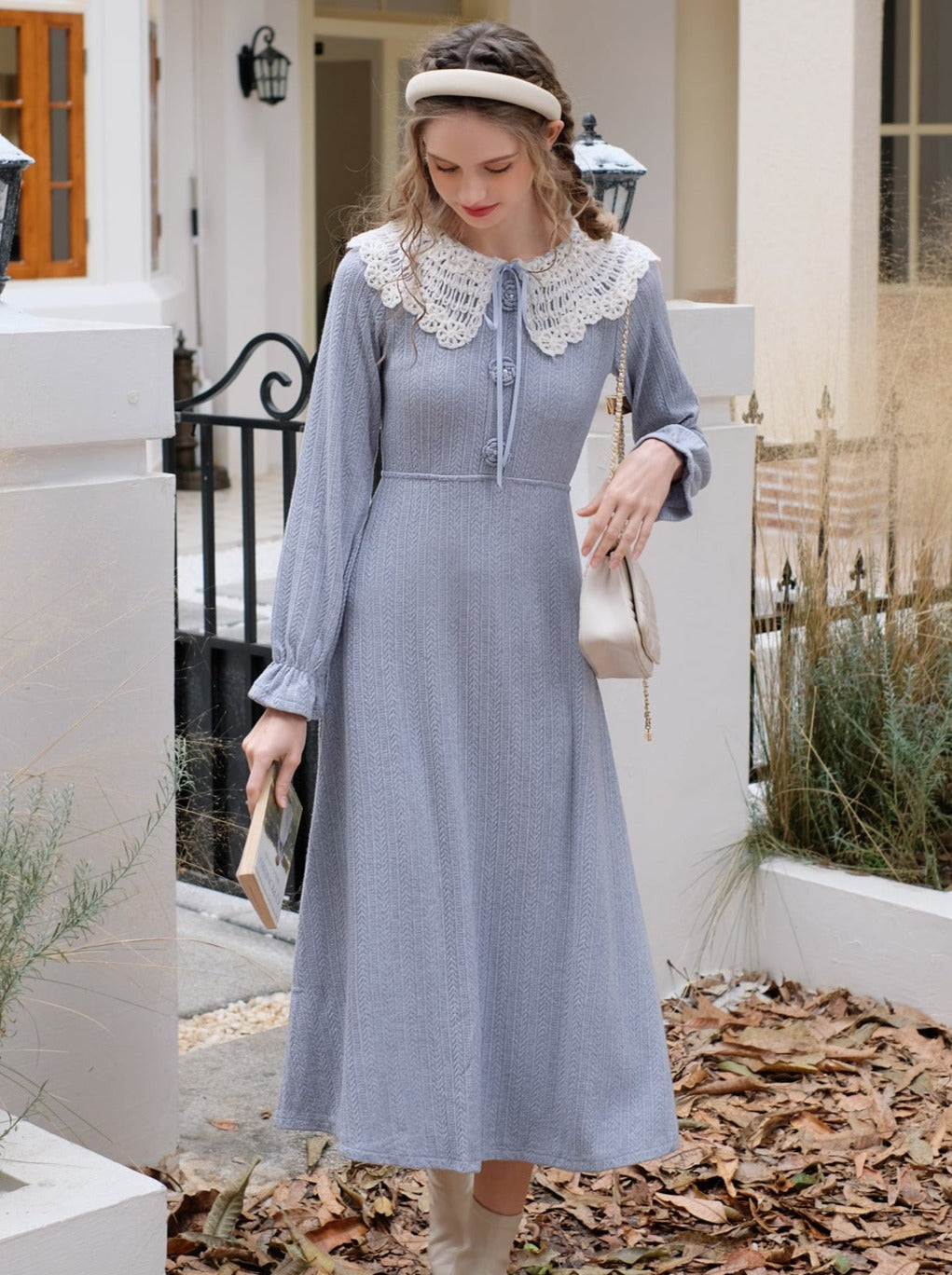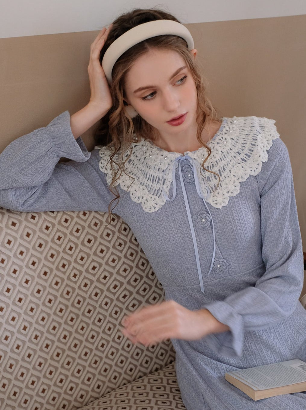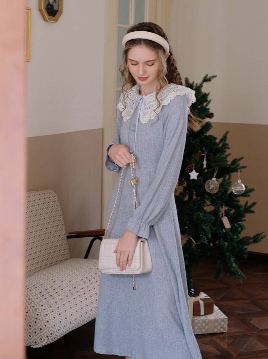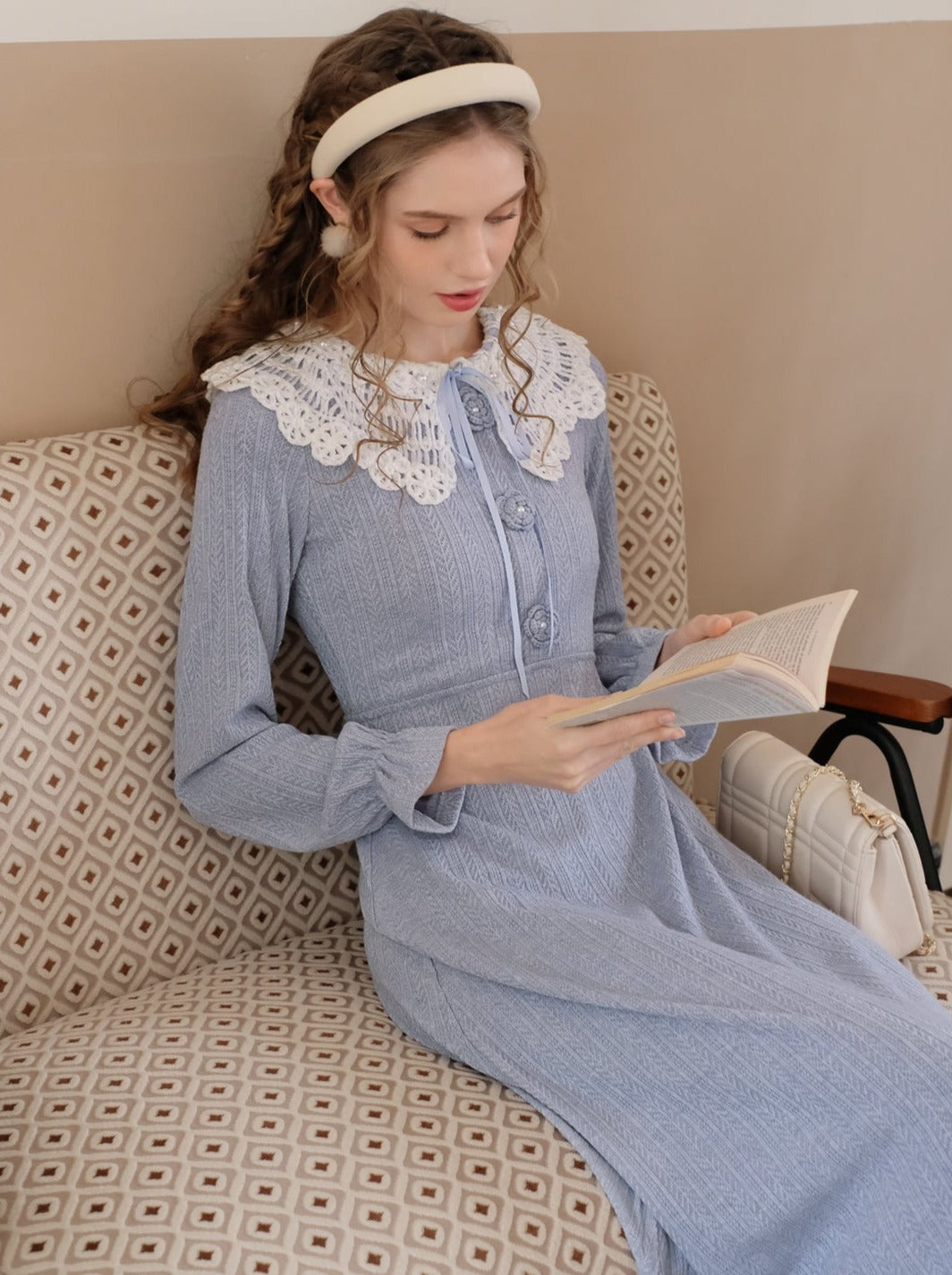 青と白のオールドスクールロリータファッションドレス 蝶結びディテール JSK セット