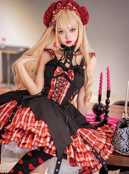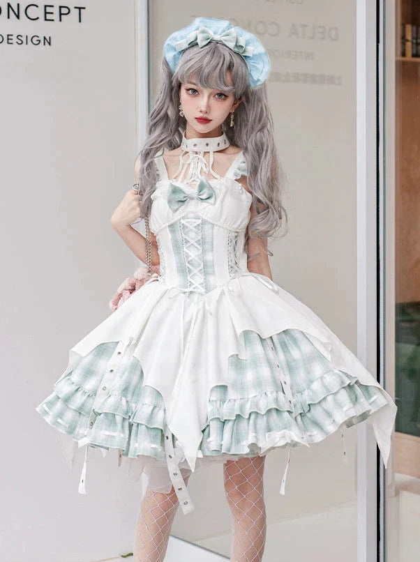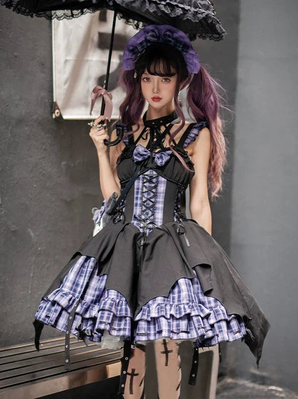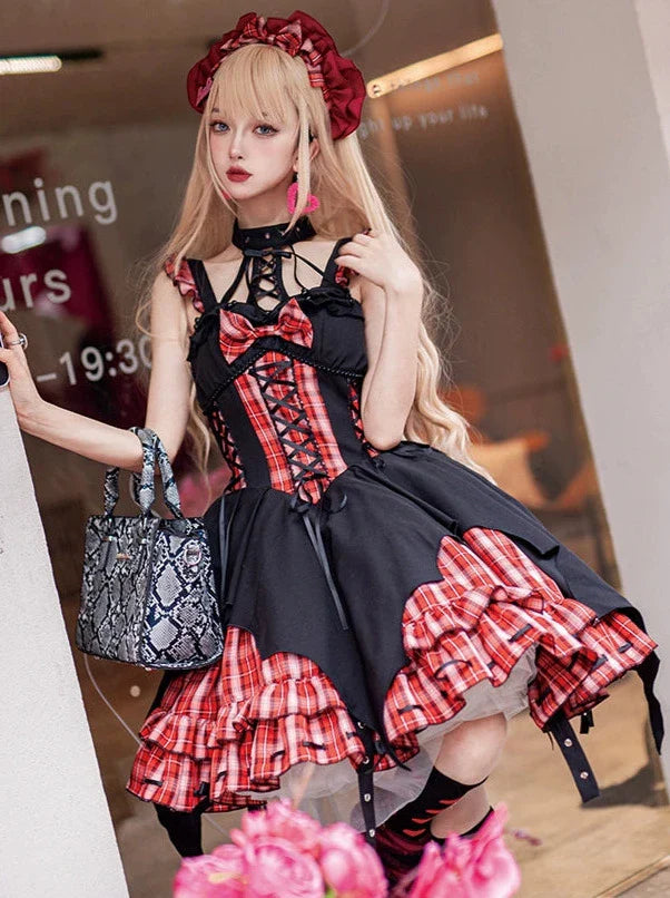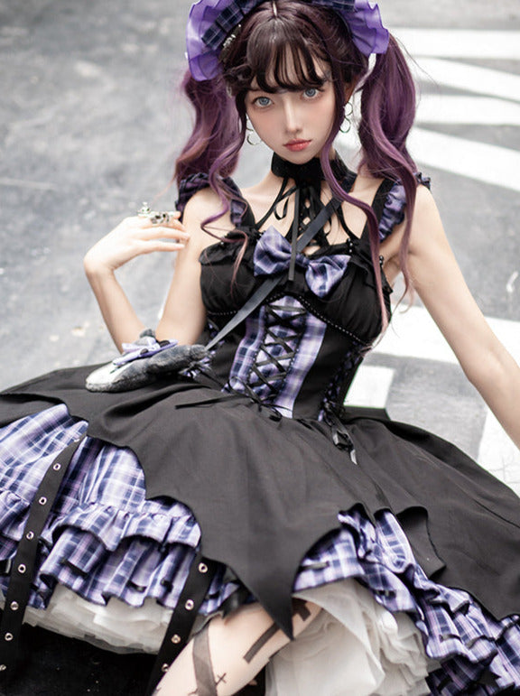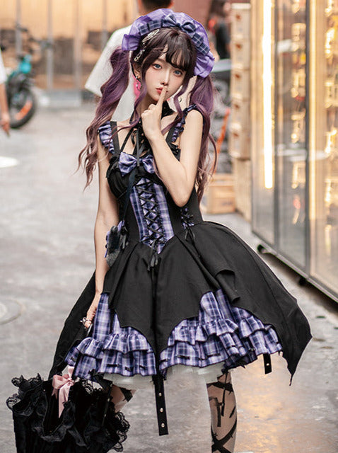 黒と白のオールドスクールロリータファッションドレス蝶結びロリータJSKセット