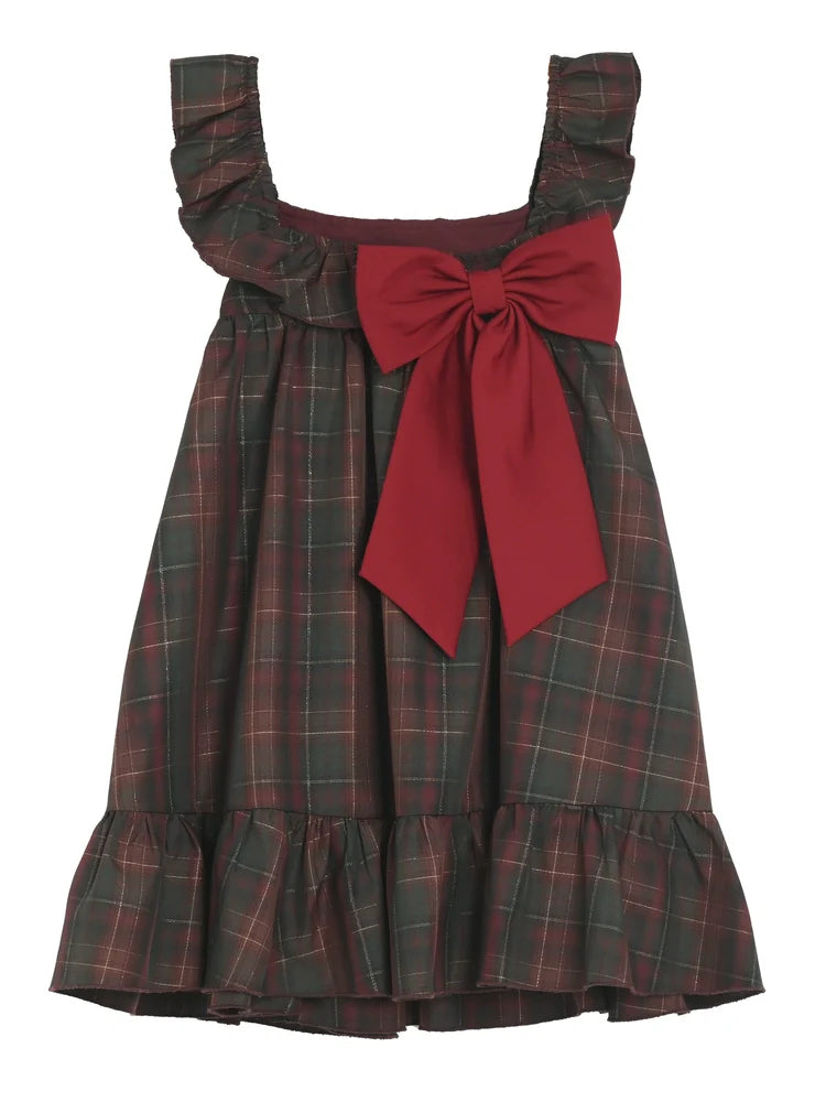 チャーミングなフリルデザインと大きなリボンが特徴のこのドレスは、どんな服装にも可愛らしさをプラスしてくれます。お洒落を楽しく、そして簡単に演出できます。