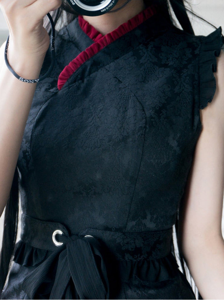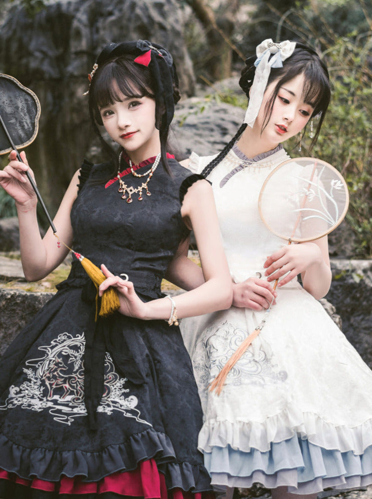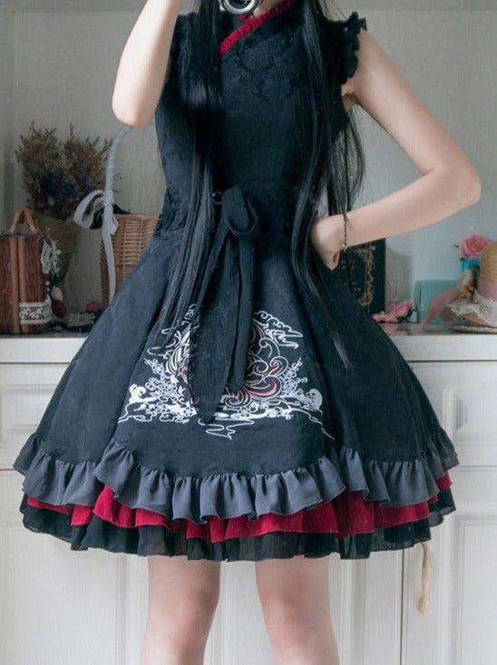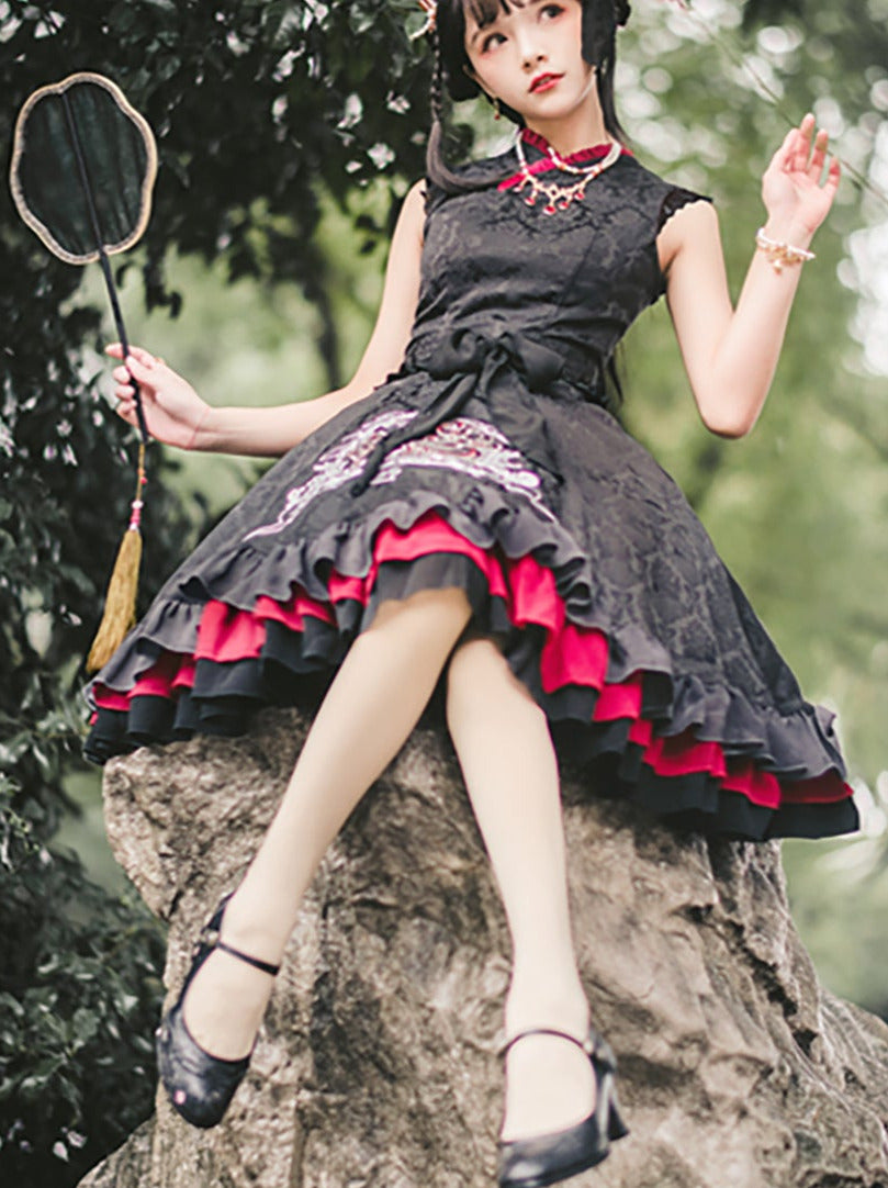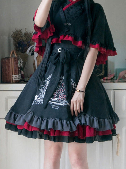 黒と白のオールドスクールロリータファッションドレス蝶結びロリータJSKセット