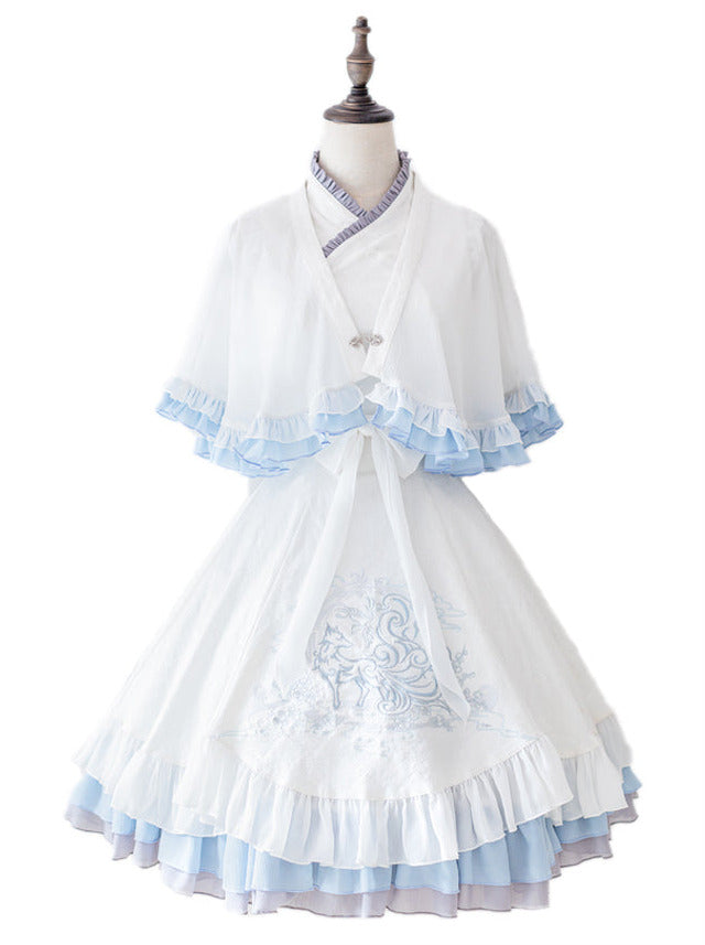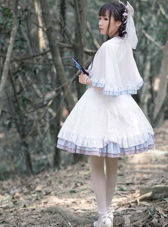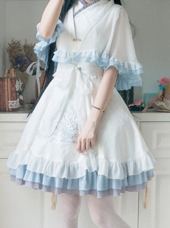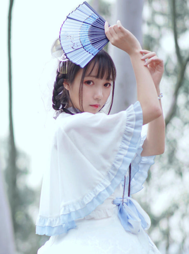 青と白のオールドスクールロリータファッションドレス 蝶結びディテール JSK セット