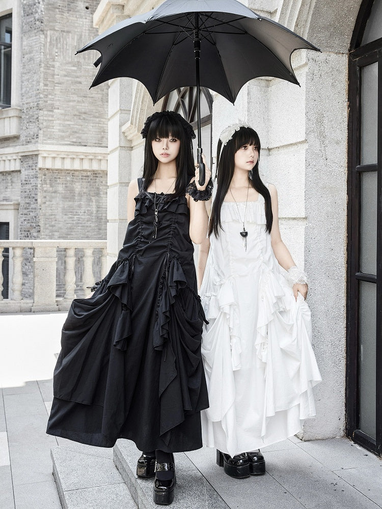 ドレス ルーズ ホワイト ゴス フリル デザイン ドローストリング カスケード