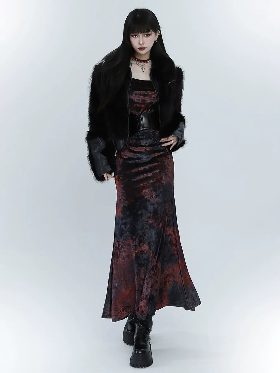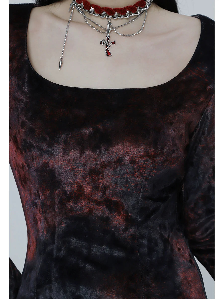 ユニークなフィッシュテールデザインが特徴の、この素敵なドレスはどんなシーンにもぴったりです。柔らかく贅沢なダークベルベット素材を使用し、エレガントでミステリアスな魅力を放ちます。スタイリッシュに着こなして、周りの視線を釘付けにしましょう。