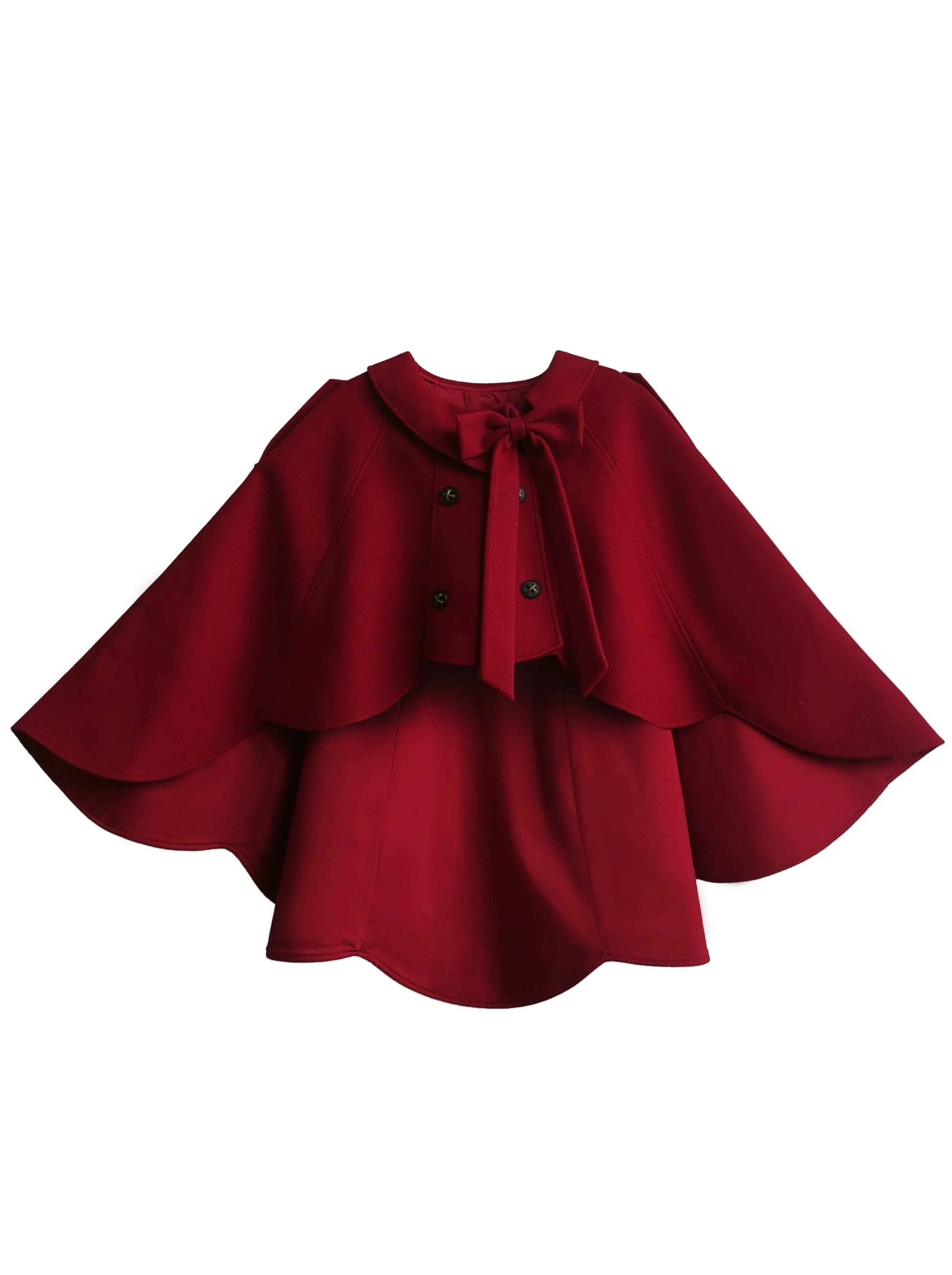 ドレス リボンカラー フード ヘッドライディング レッド リトル + スカーフ ティアード プリーツ ケープ コート チェックシャツ