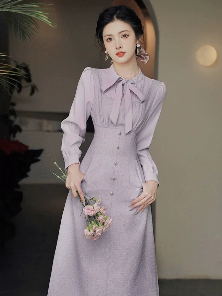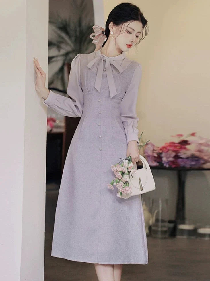 このパープルのレトロリボンがキュートなシアー素材のドレスは、どんなシーンにもぴったり。透け感のある生地とキュートなリボンのディテールが、装いに甘さをプラス。このドレスを着て、愛らしく、そして可憐な気分を味わってください!