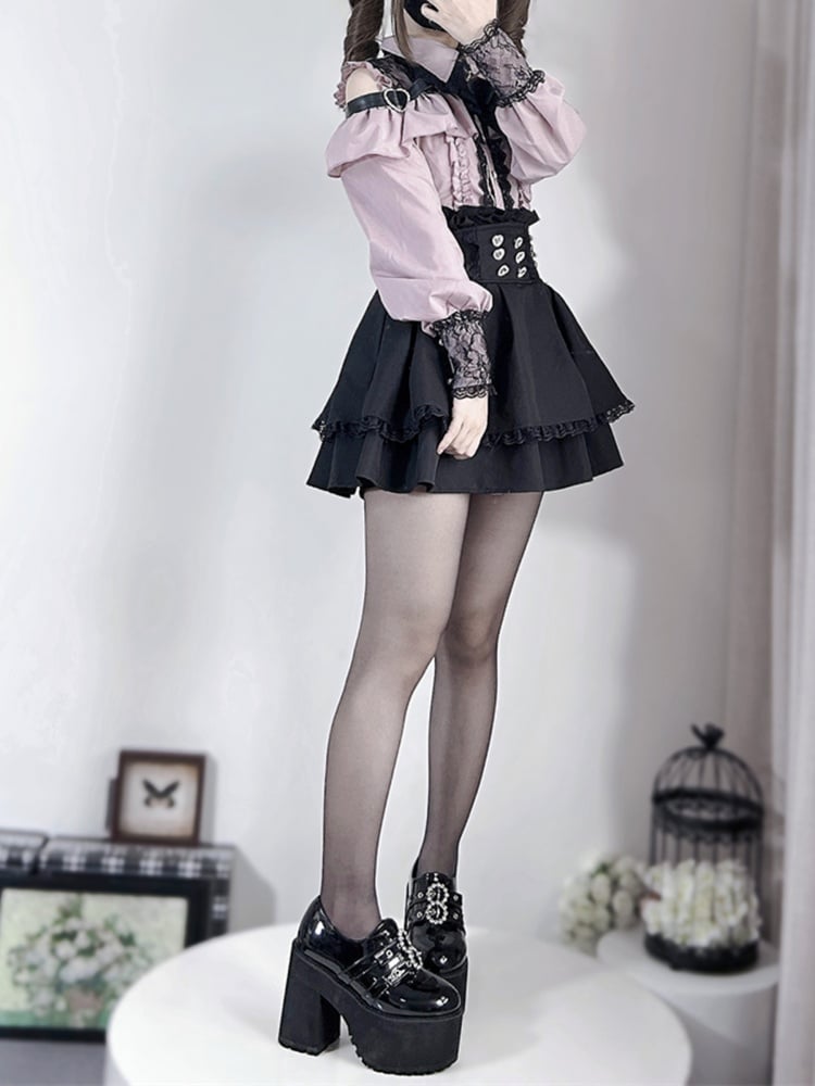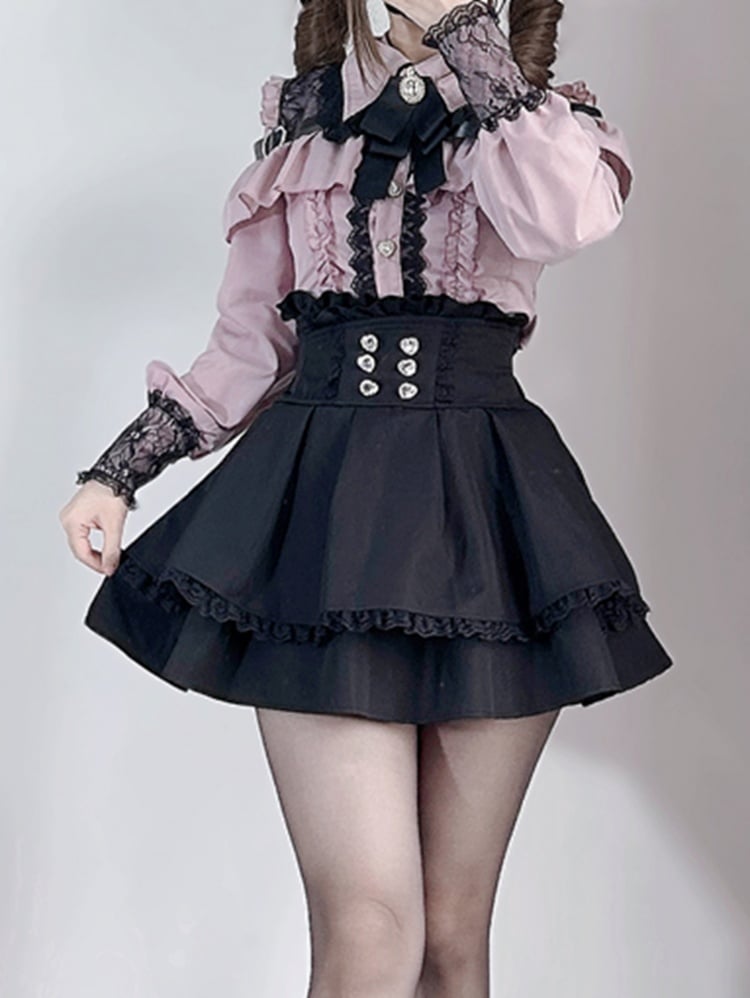 ダスティピンクのハートボタン留めジライケイトップス(蝶ネクタイ付き)