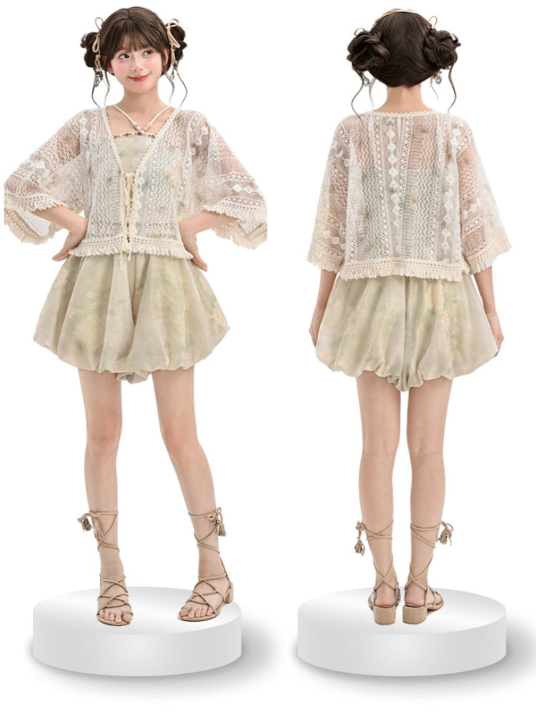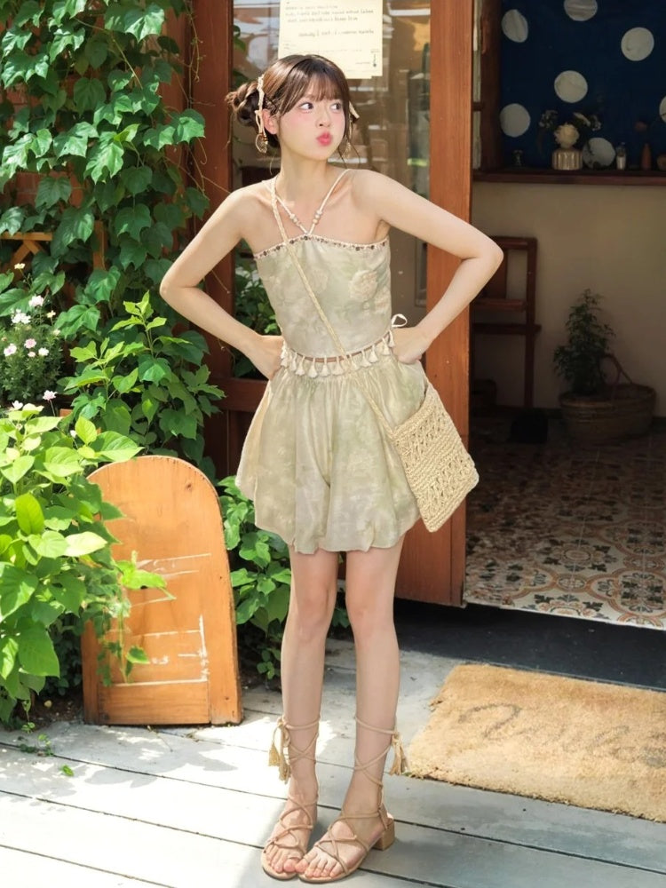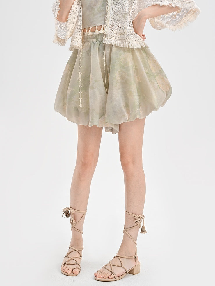 ライトグリーンの伸縮性ウエストタイダイショーツ