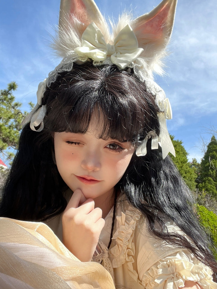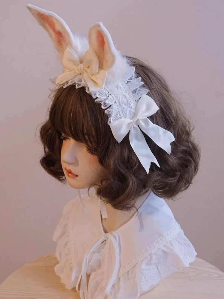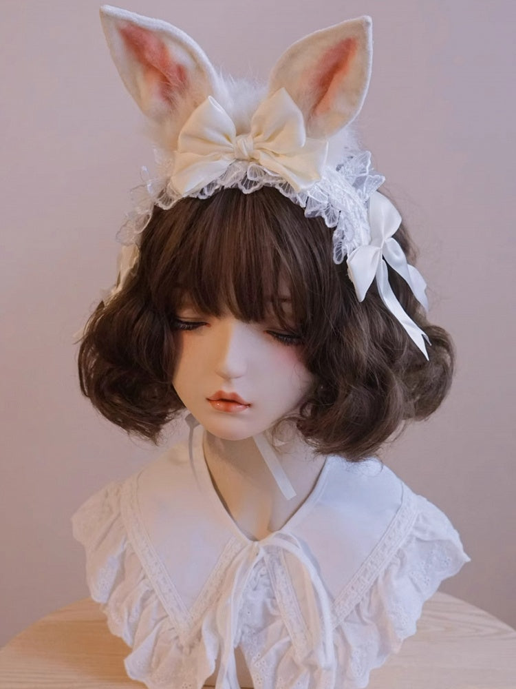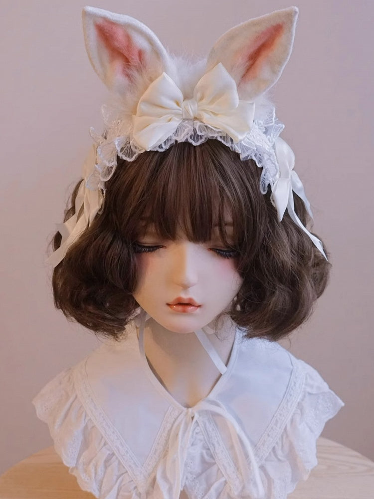 耳のディテールトリムレースホワイトバニーボウノットKC