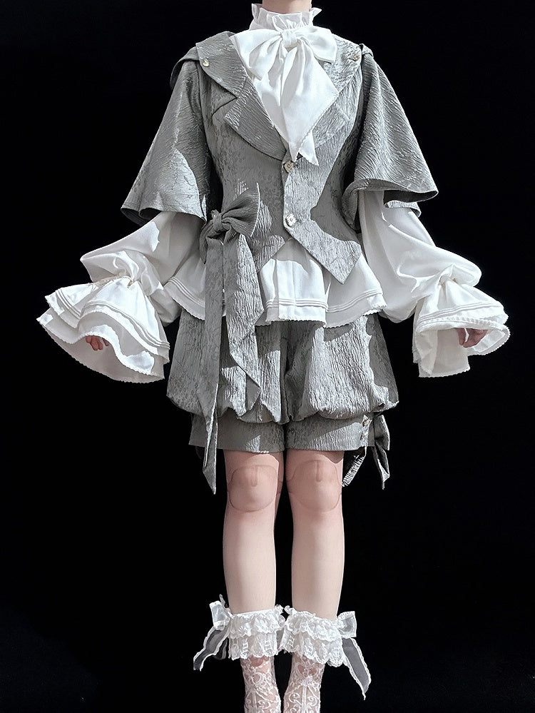 青と白のオールドスクールロリータファッションドレス 蝶結びディテール JSK セット
