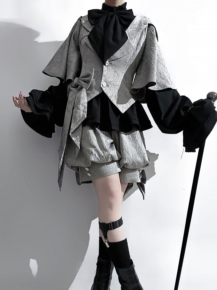 黒と白のオールドスクールロリータファッションドレス蝶結びロリータJSKセット