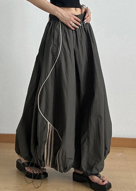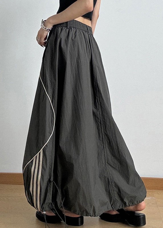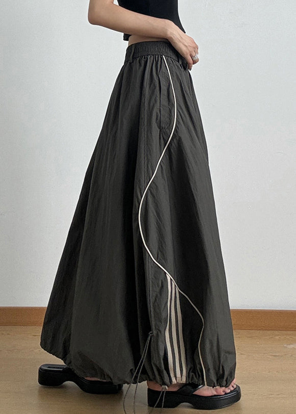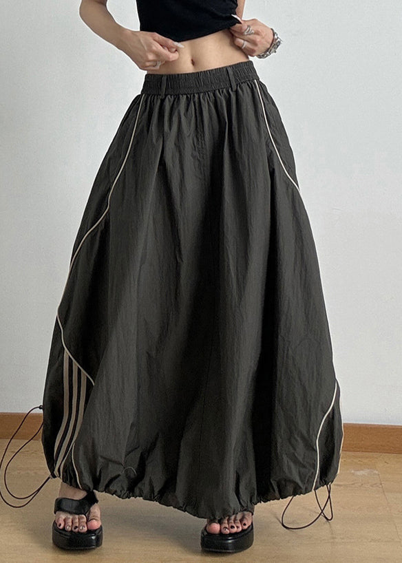 カジュアルアーミーグリーンの伸縮性ウエストドローストリングAラインスカート夏