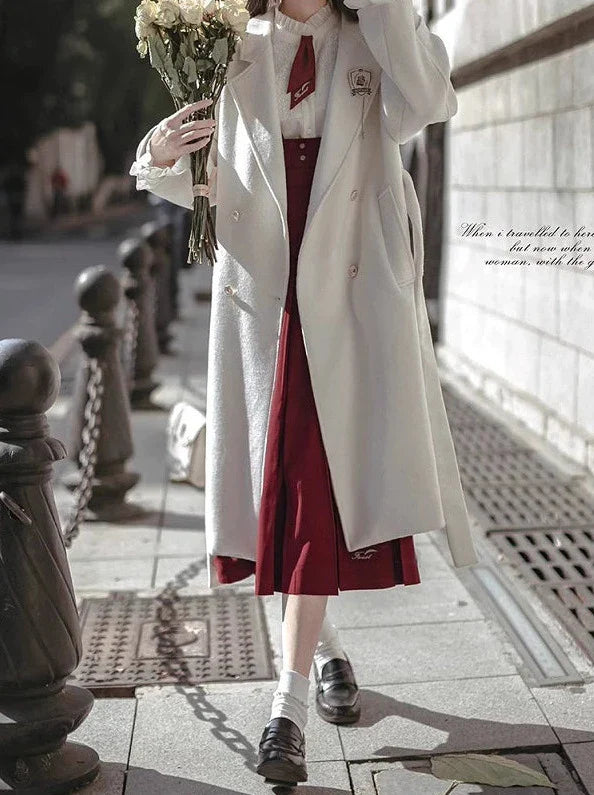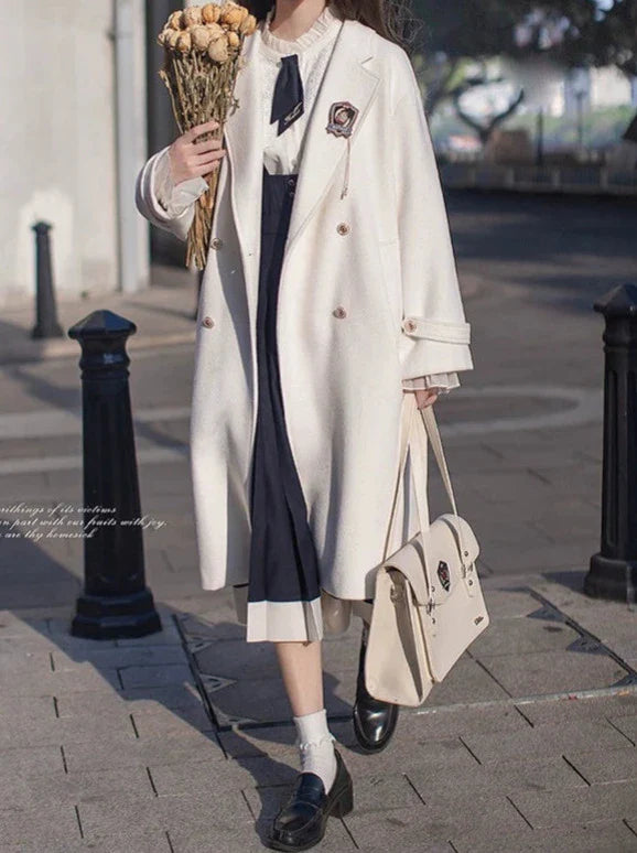 ダブルブレストデザインと柔らかなウール素材が特徴のエレガントなホワイトコクーンコートで、この冬は暖かくスタイリッシュに過ごしましょう。ファッションセンスをアピールしたい大学生にぴったりです。
