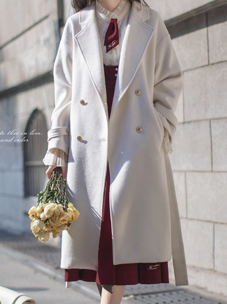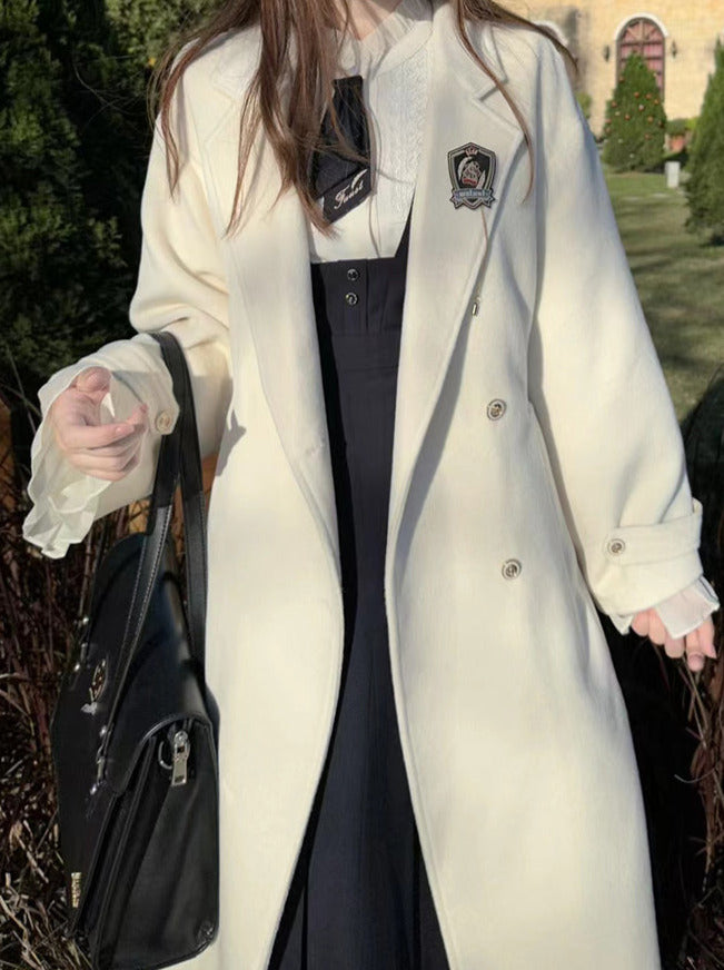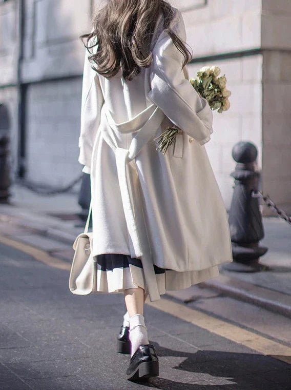 エレガントなホワイトのダブルブレストコクーンコート(カレッジウール)