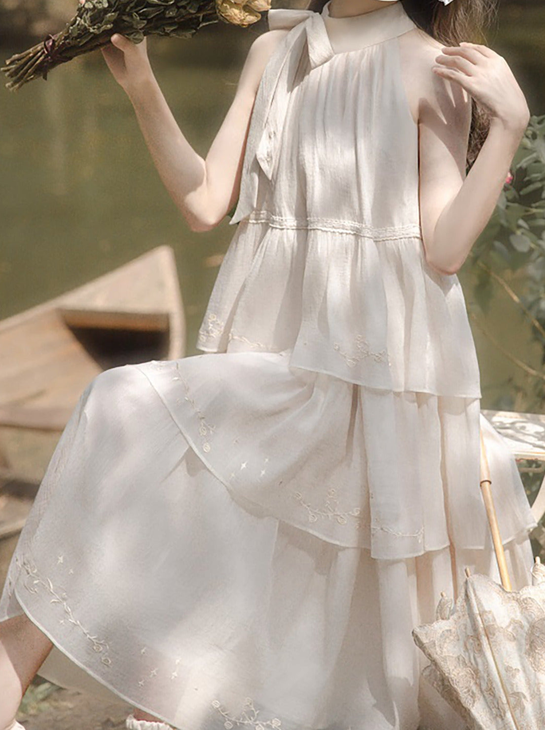 刺繍ケーキフェアリームーンライトドレスネックホルター