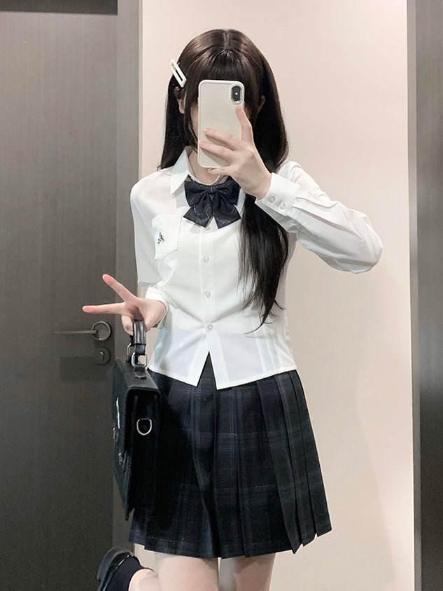 刺繍文字ユニフォームスタイルJKホワイトプレッピーシャツ