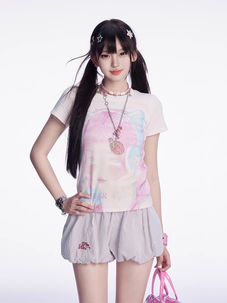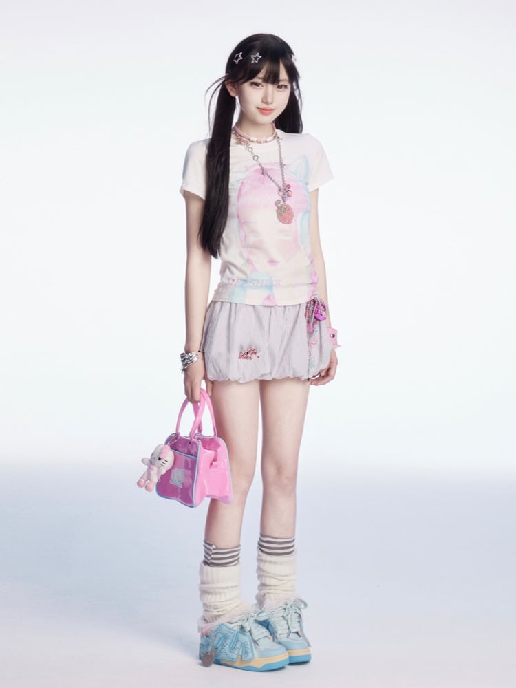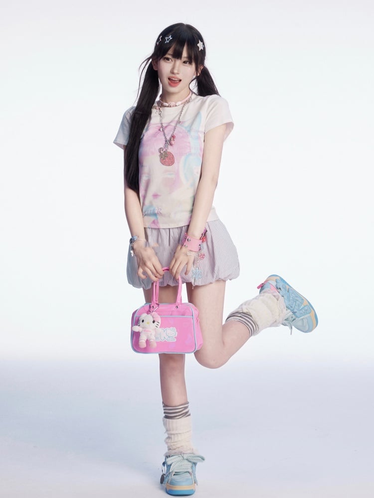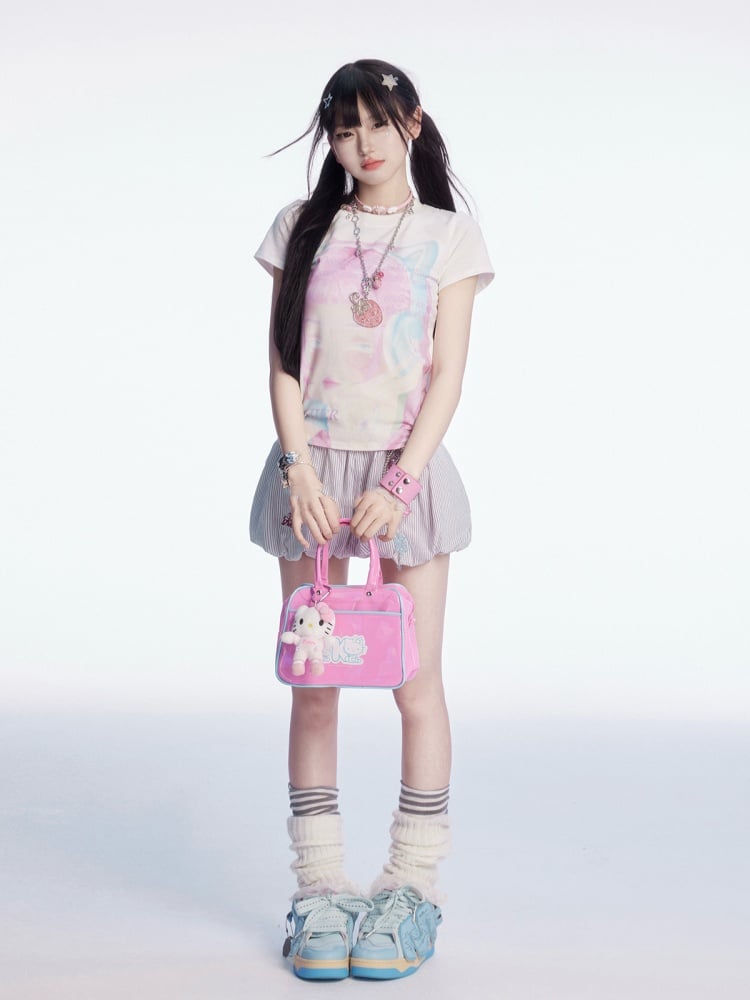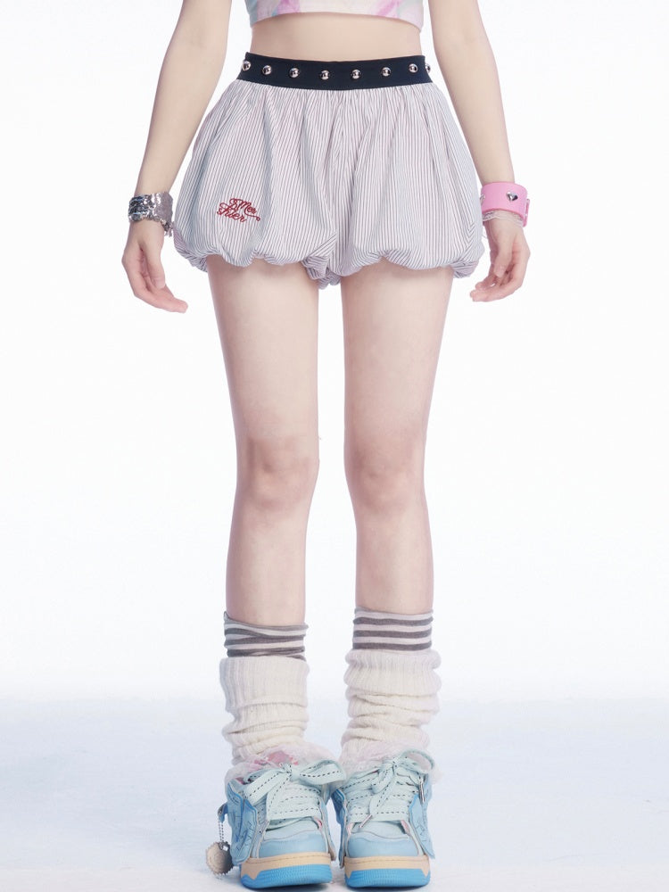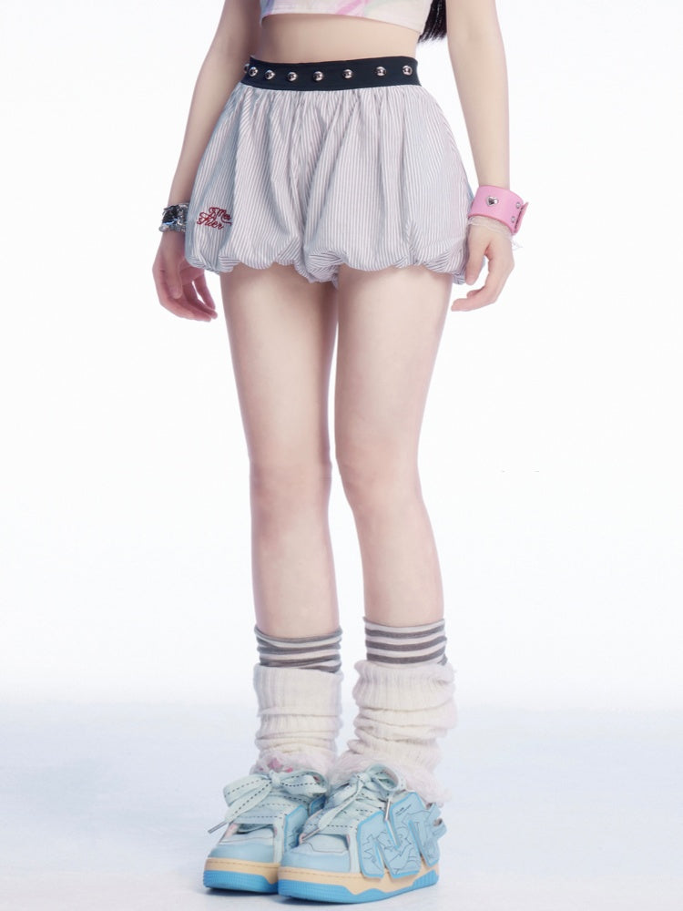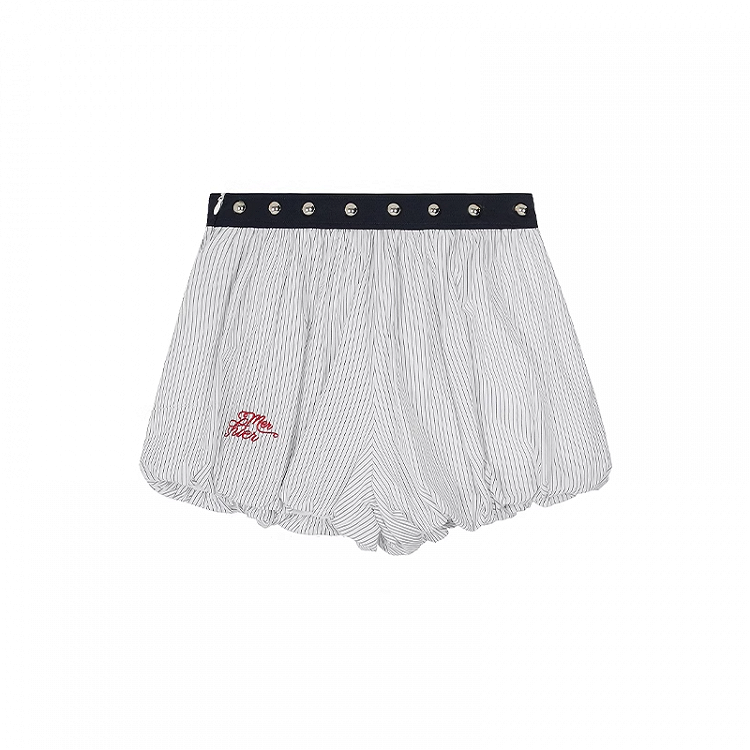 ホワイトストライプ柄レター刺繍ミニバブルスカート
