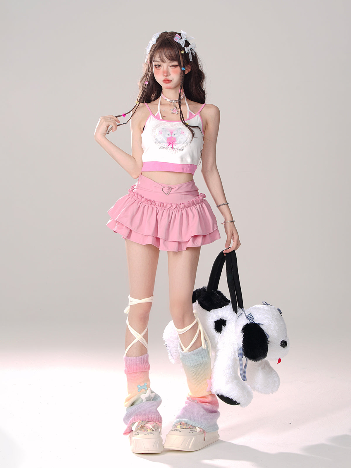 ワードローブに素敵なアクセントを添える、エッセンス パフ ラッフル スカート ラブ ケーキ。繊細なラッフルと遊び心のあるプリントが、どんな装いにも魅力を添えます。柔らかな生地と美しいフィット感が、快適さとスタイルを両立し、どんなシーンにもぴったりです。