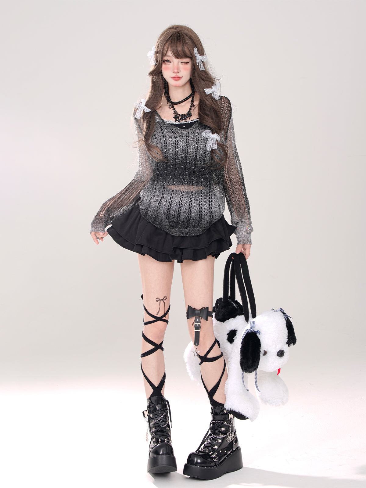 黒と白のオールドスクールロリータファッションドレス蝶結びロリータJSKセット