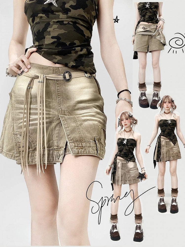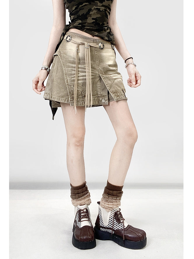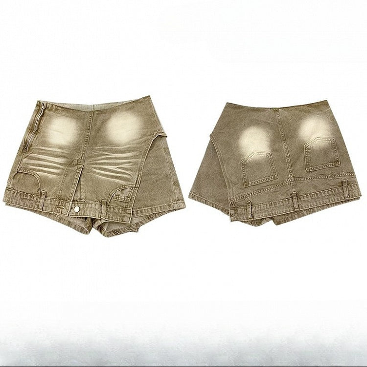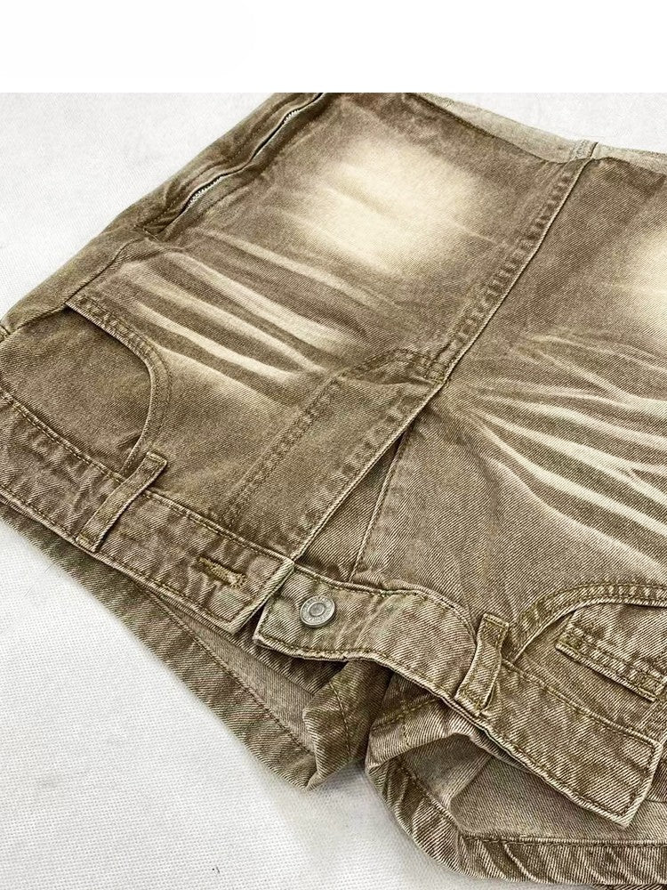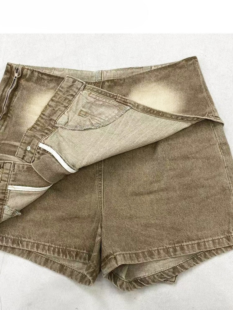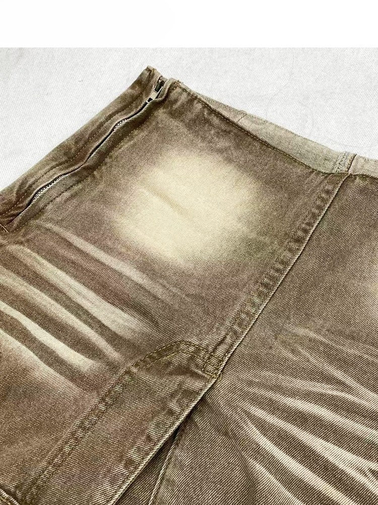 ライトブラウンミラードファッションフェードウォッシュデニムスコート