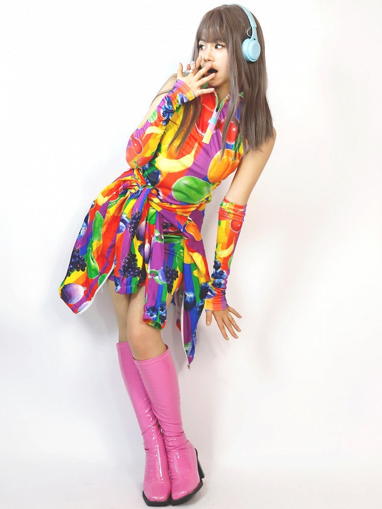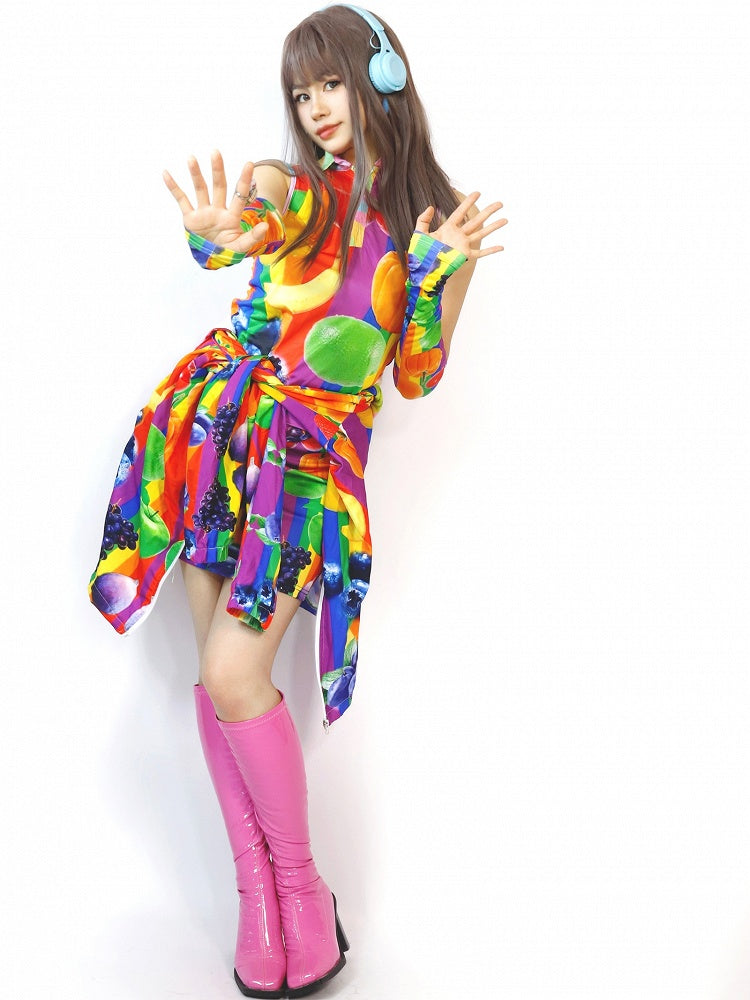 カラフルなギャルファッションのフルーツプリント袖付きベスト
