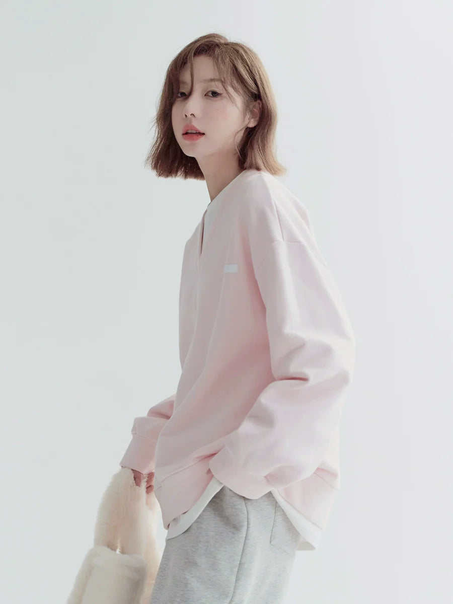 フェイクツーピース ライトカラー ルーズスウェットシャツ