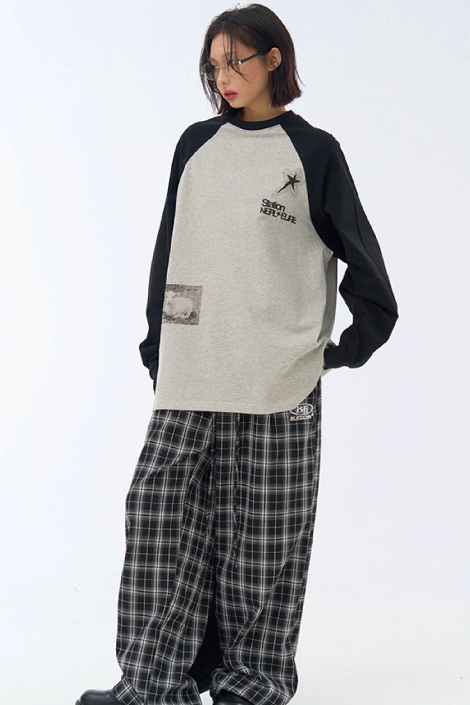 ❤ルーズフィット コリジョンプリント ロングスリーブTシャツ❤