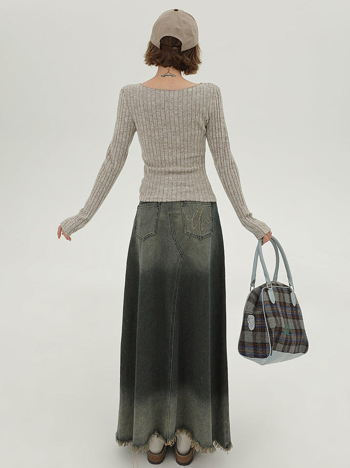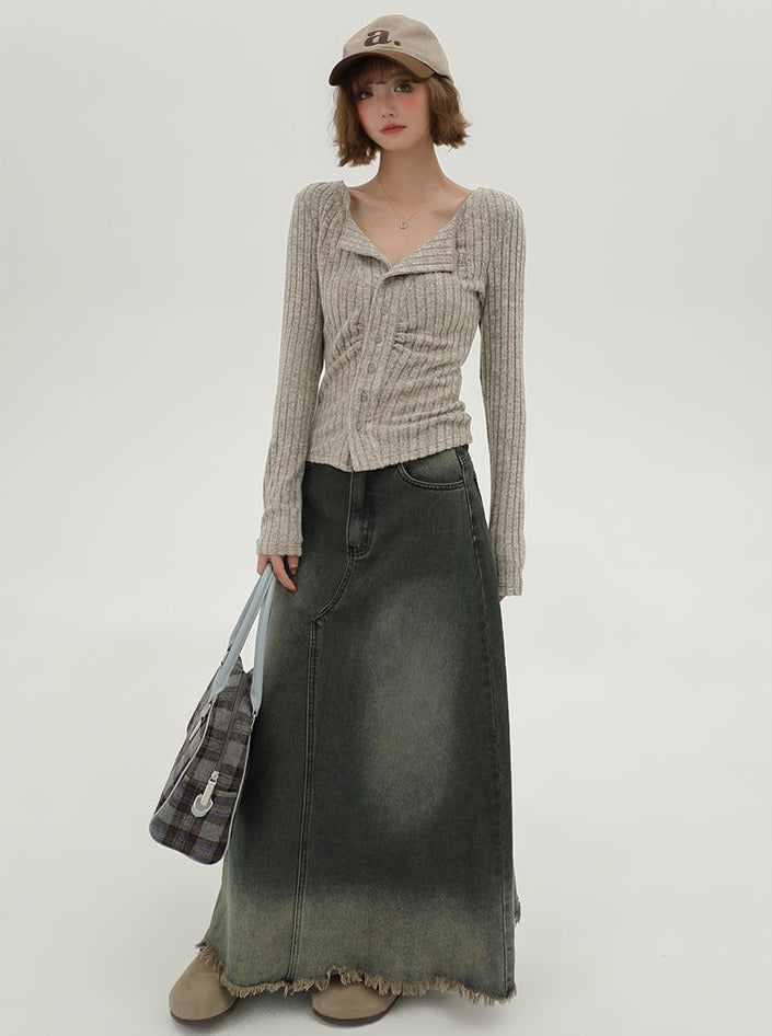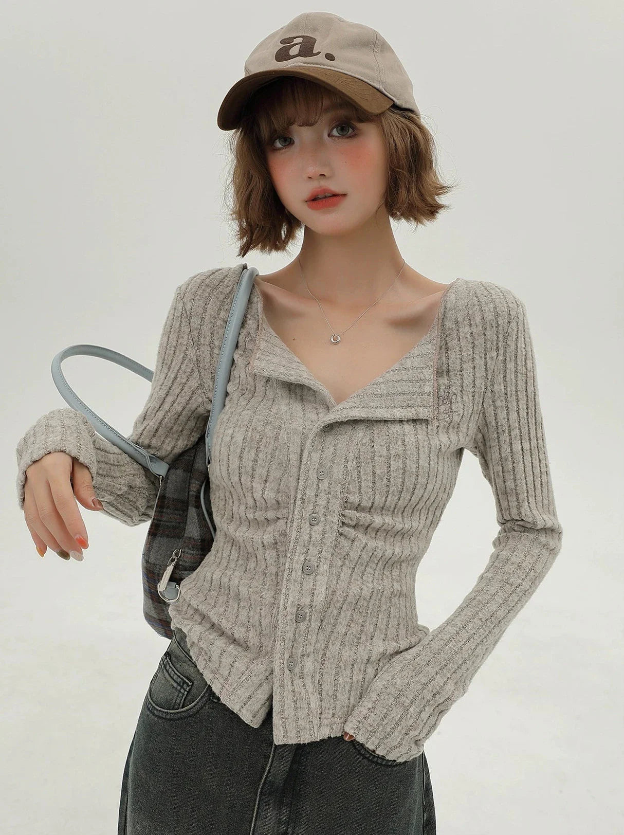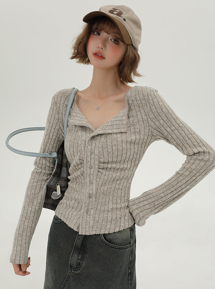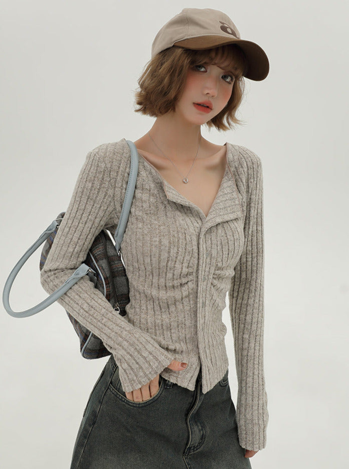 フラップニットカーディガン アメリカンカラー スリム