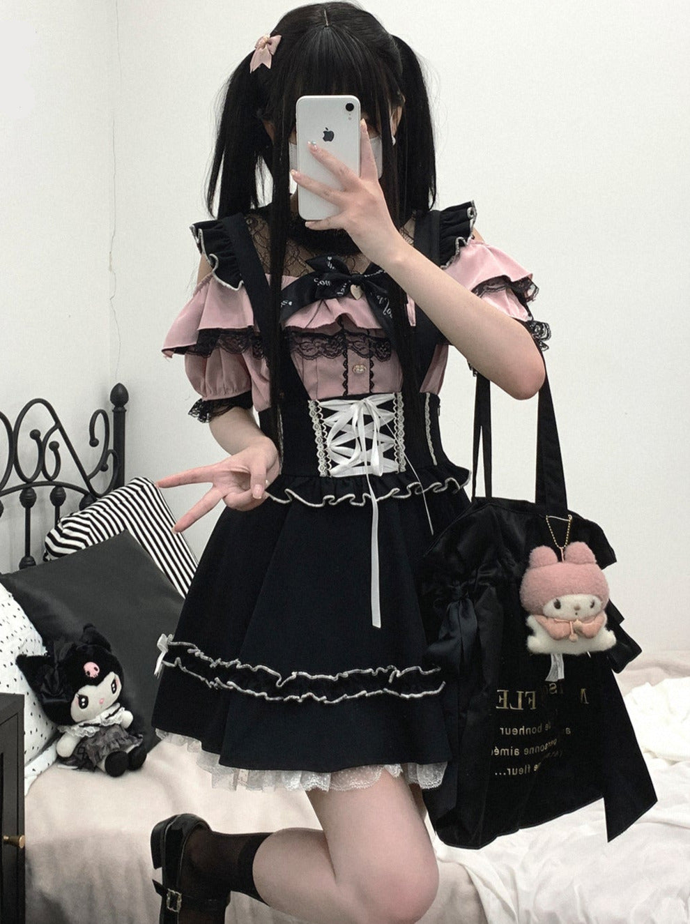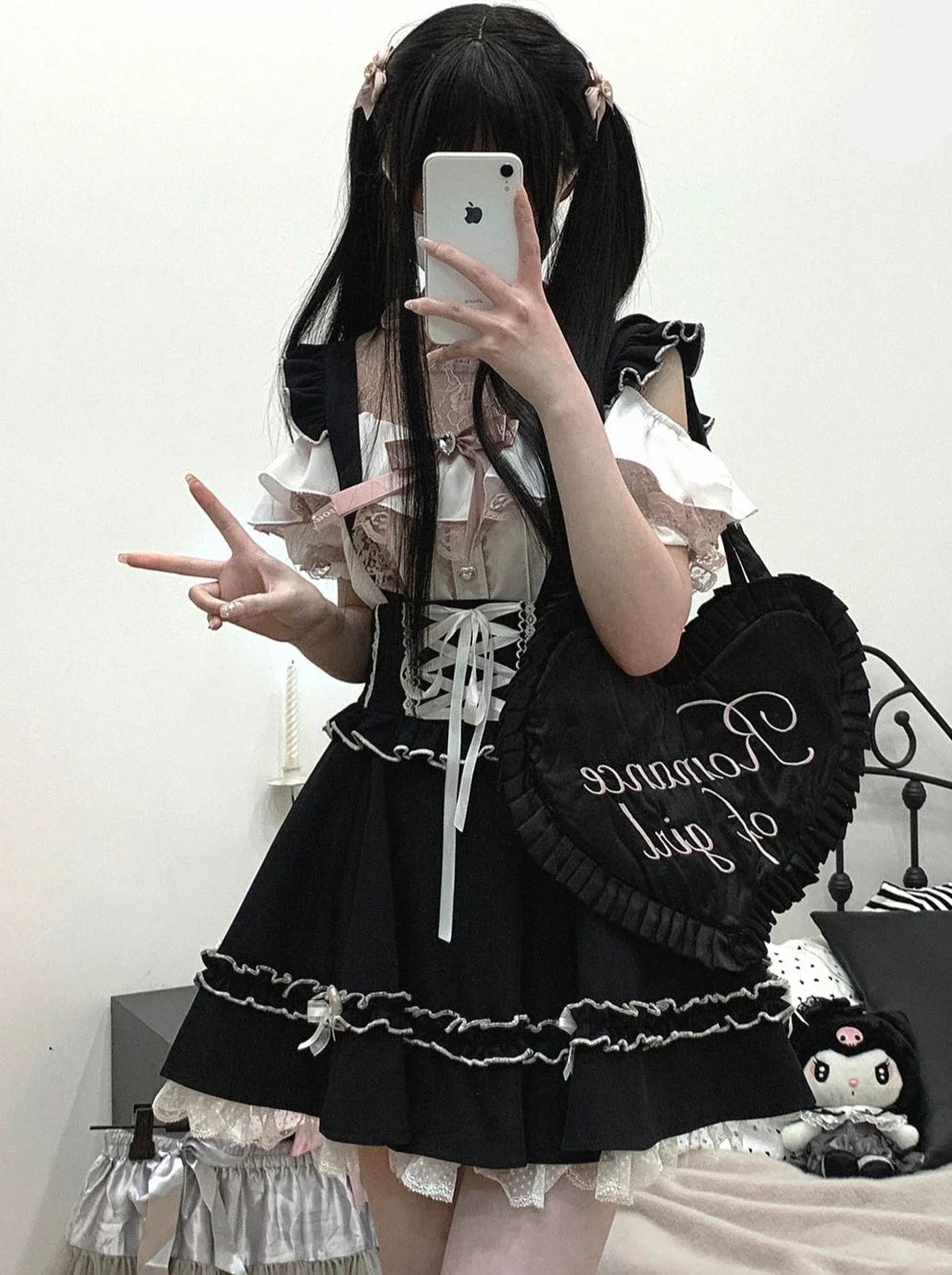 黒と白のオールドスクールロリータファッションドレス蝶結びロリータJSKセット