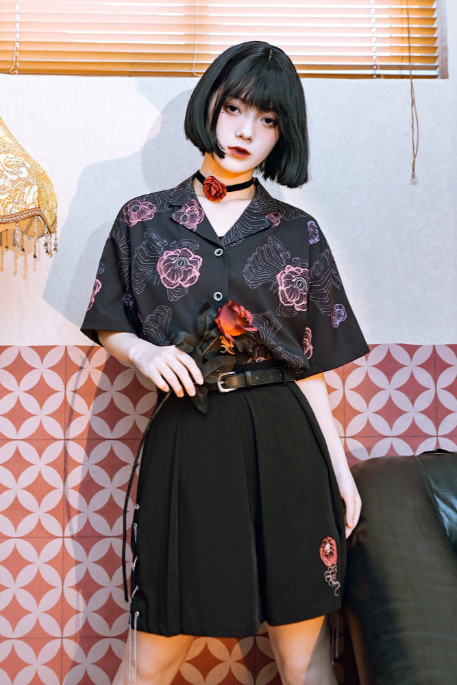 黒と白のオールドスクールロリータファッションドレス蝶結びロリータJSKセット
