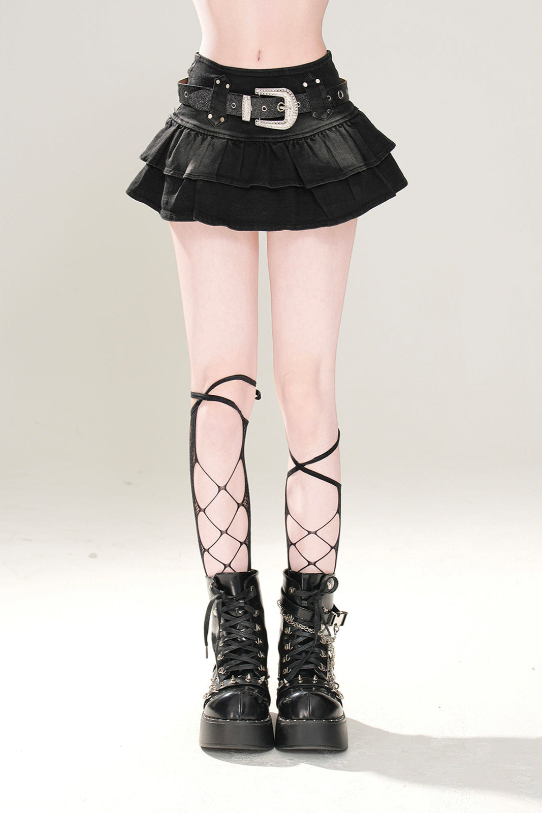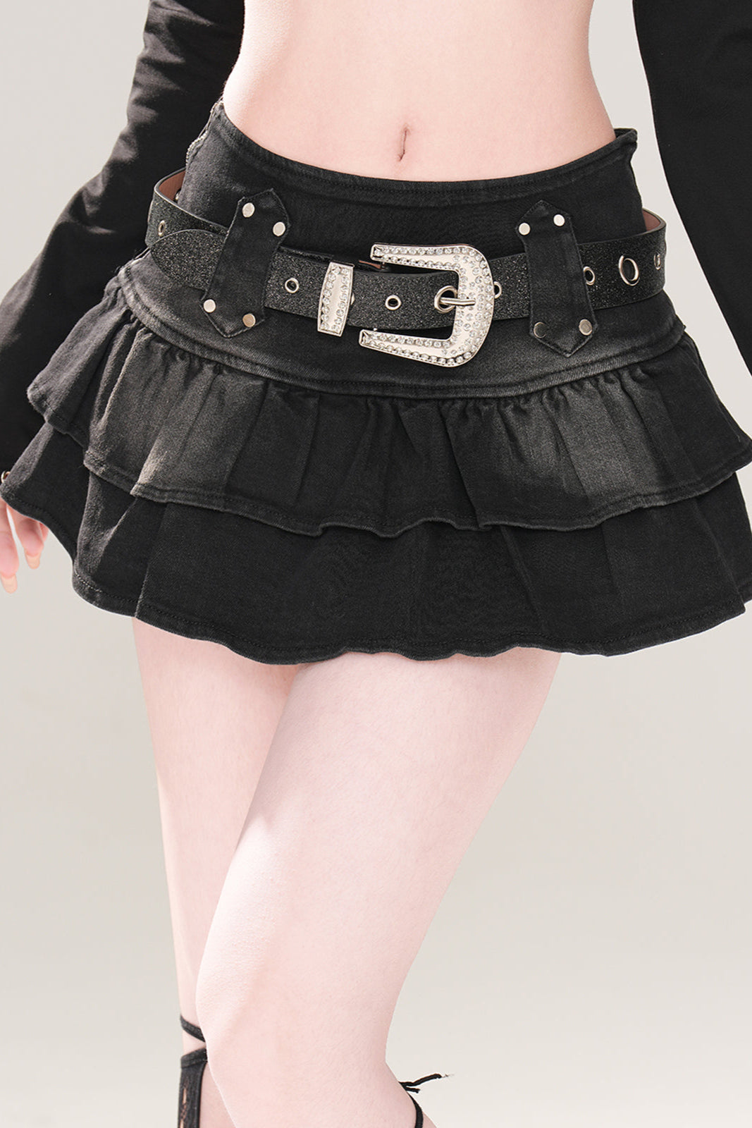 流れるようなミニスカートプリーツデニム