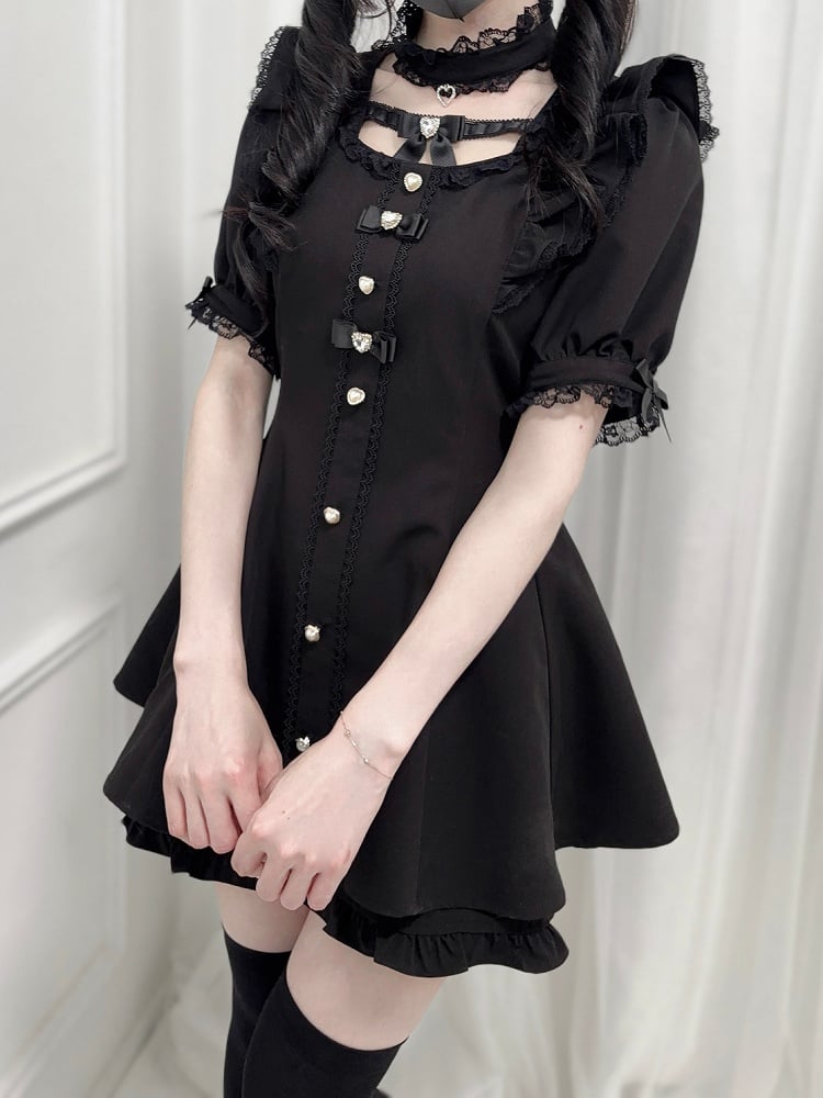 - フリル袖セルフタイボウバックミニドレス + ショートパンツ(ブラック) + ジライケイチョーカーセット